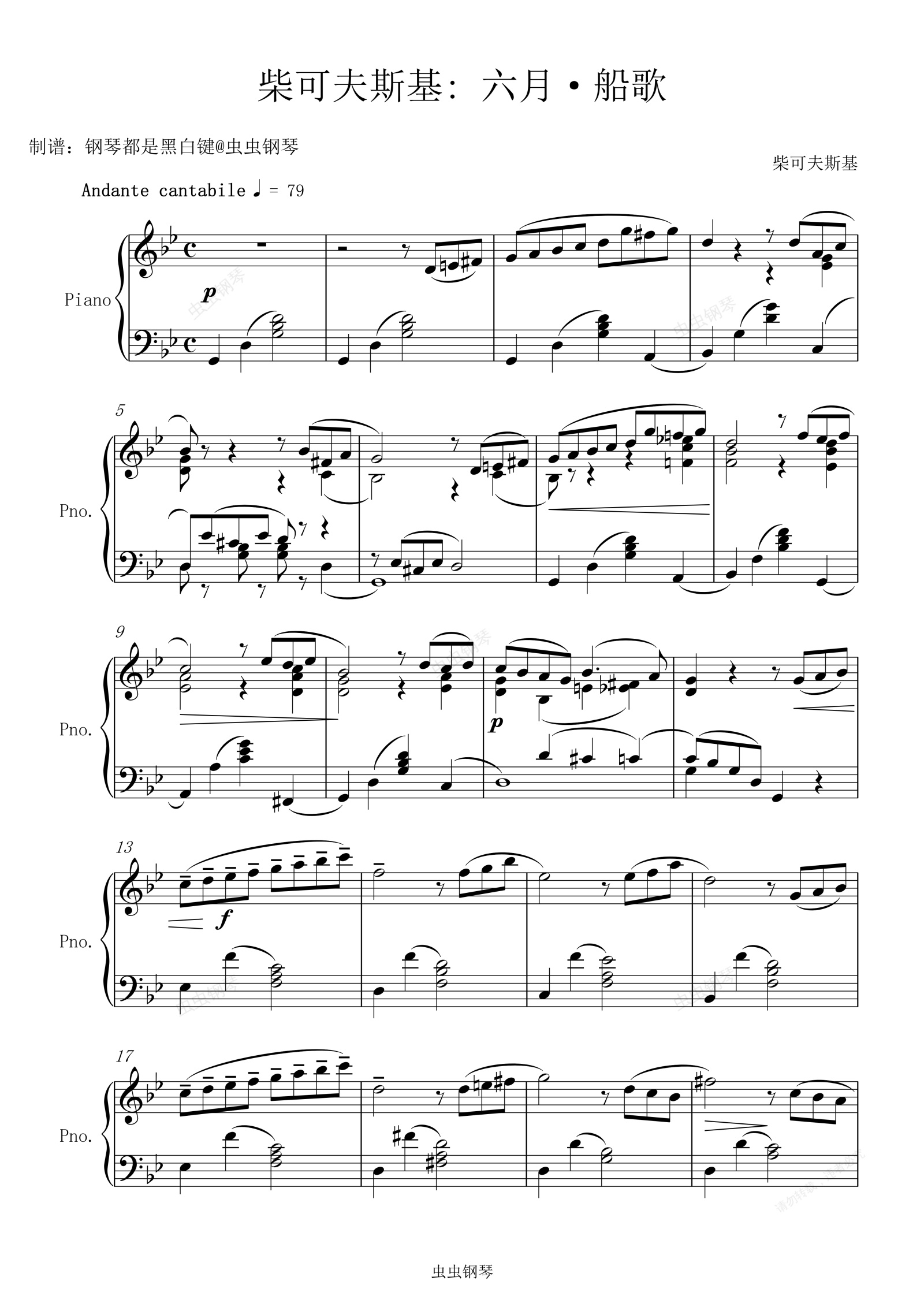 钢琴谱:柴可夫斯基_ 六月·船歌 [世界上最优美的旋律]