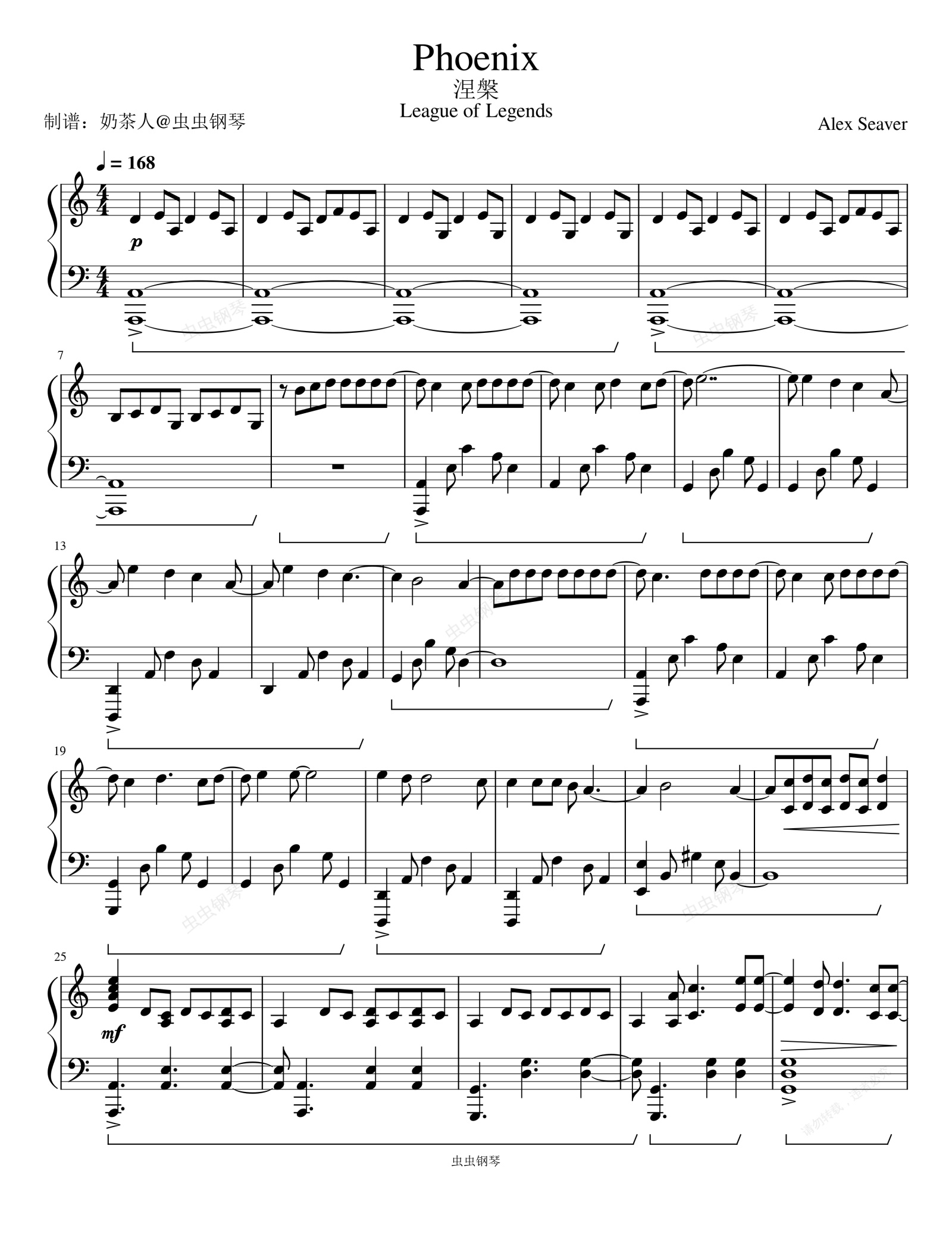 钢琴谱:《Phoenix》涅槃 LOL英雄联盟S9全球总决赛主题曲 C调独奏版