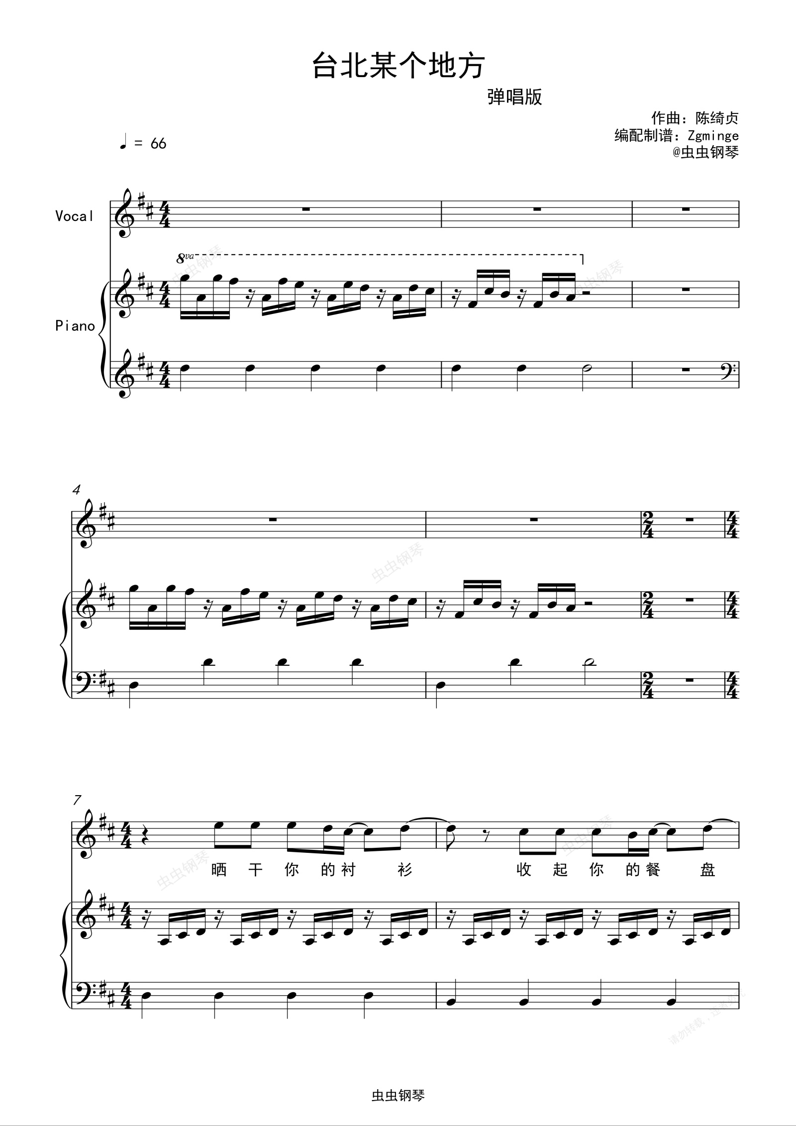 钢琴谱:台北某个地方 完美弹唱版 (带歌词贴原声)