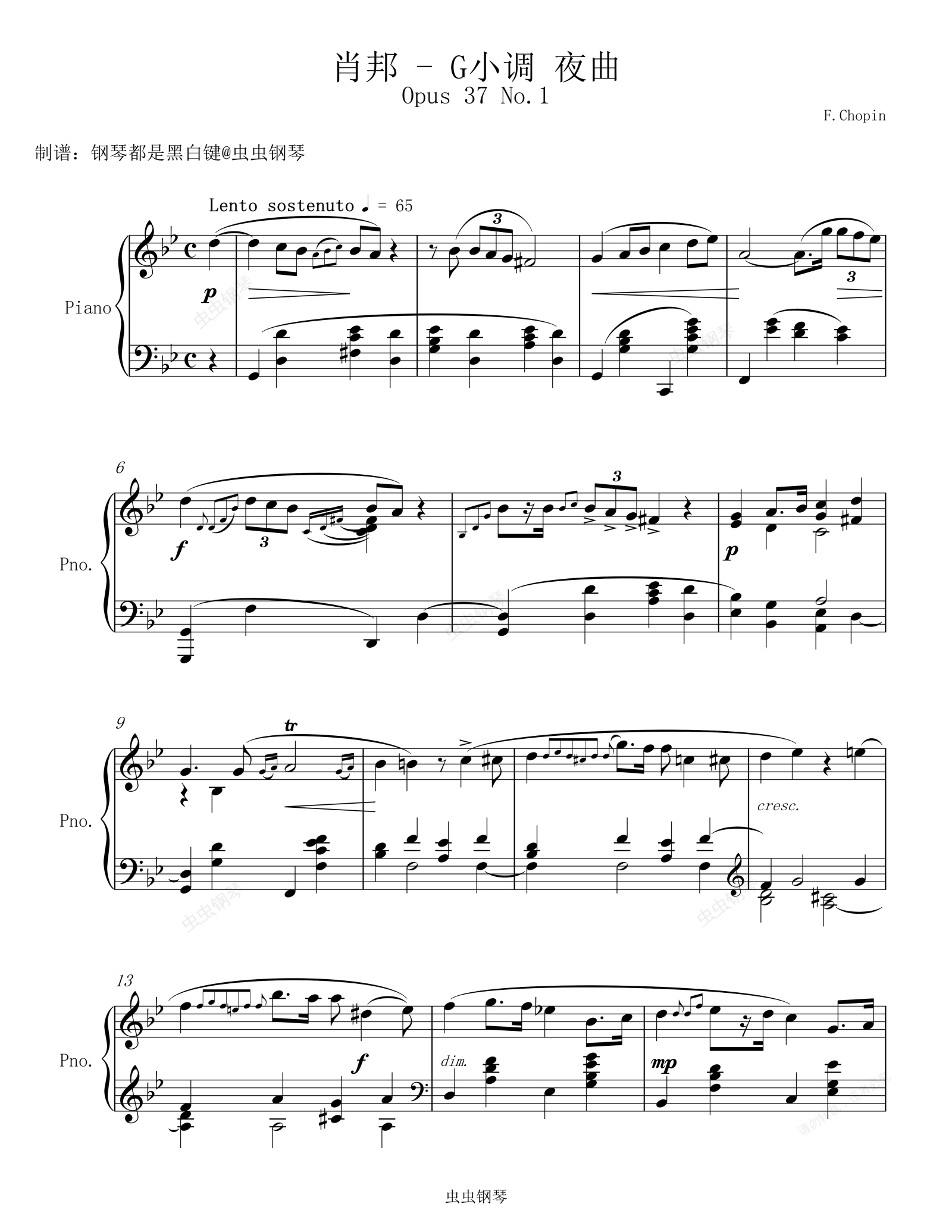 钢琴谱:肖邦 - G小调 夜曲 【优美钢琴曲集】