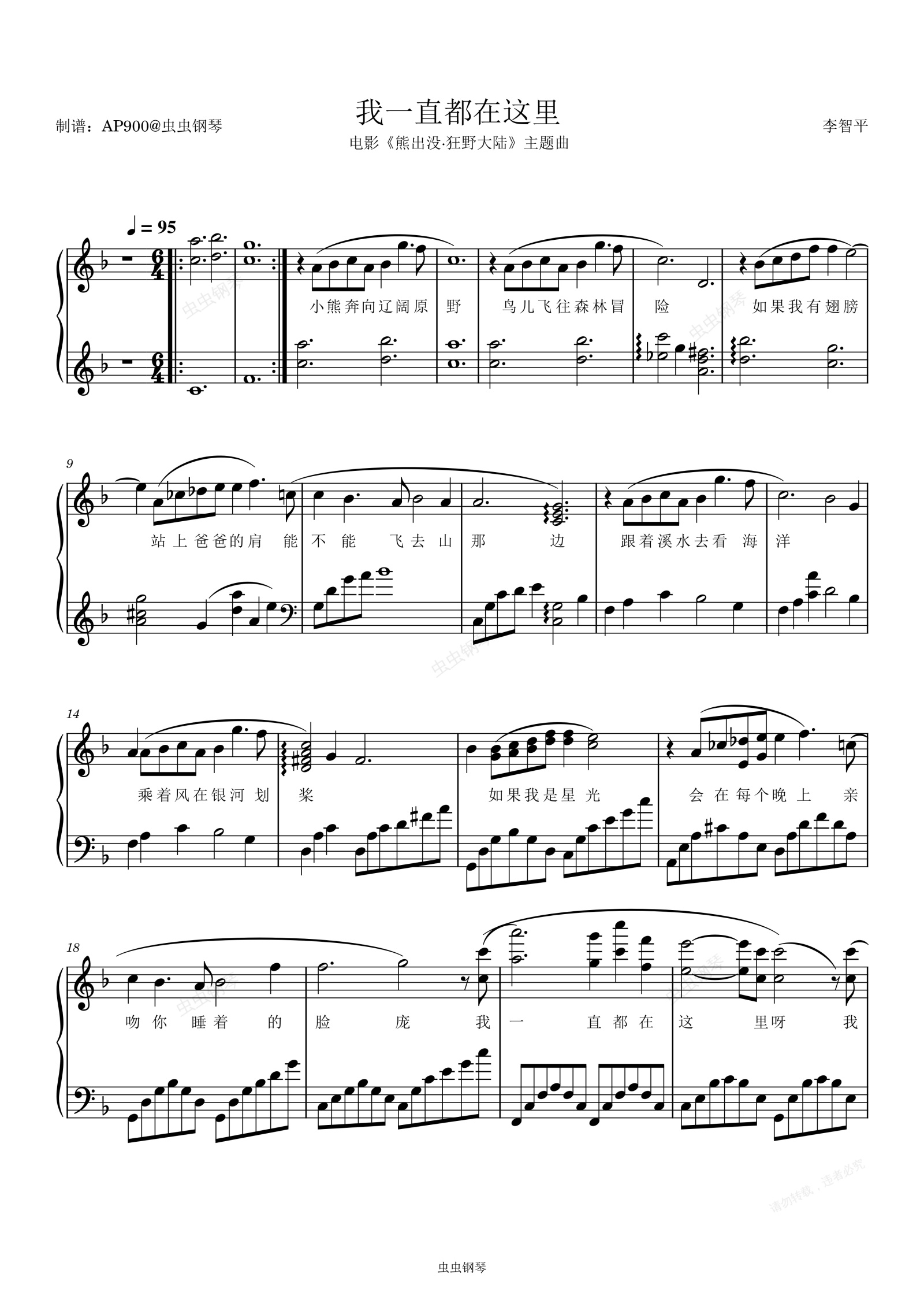钢琴谱:我一直都在这里(电影《熊出没·狂野大陆》插曲)