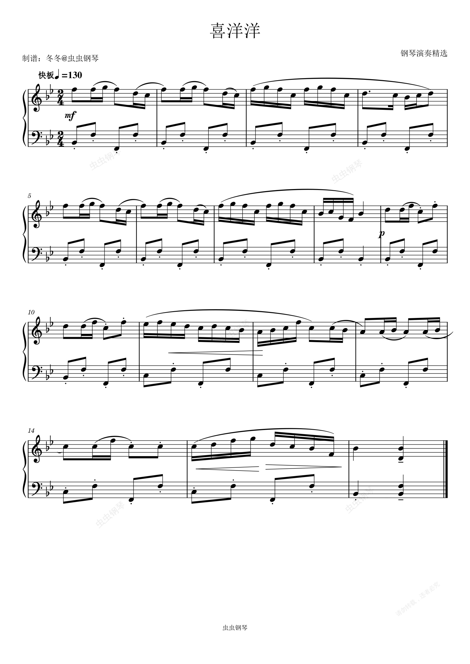 钢琴谱:喜洋洋