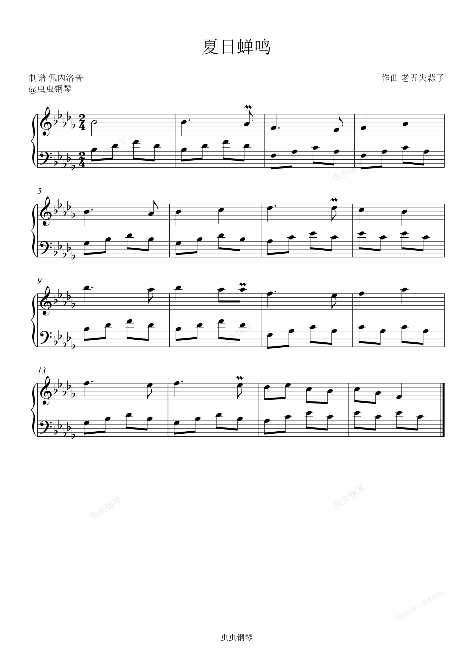 钢琴谱:夏日蝉鸣【佩內洛普制谱】