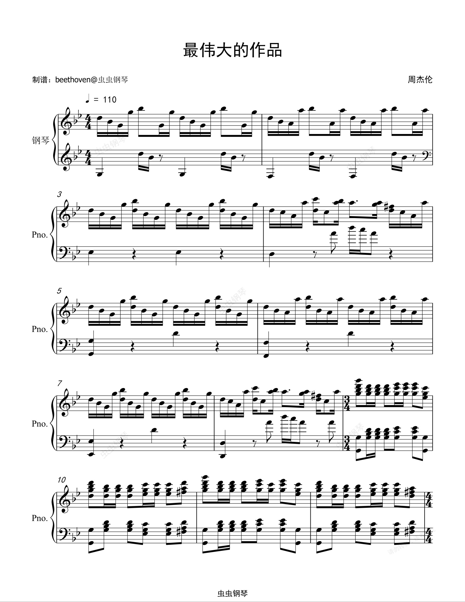 钢琴谱:最伟大的作品(伟大版)周杰伦