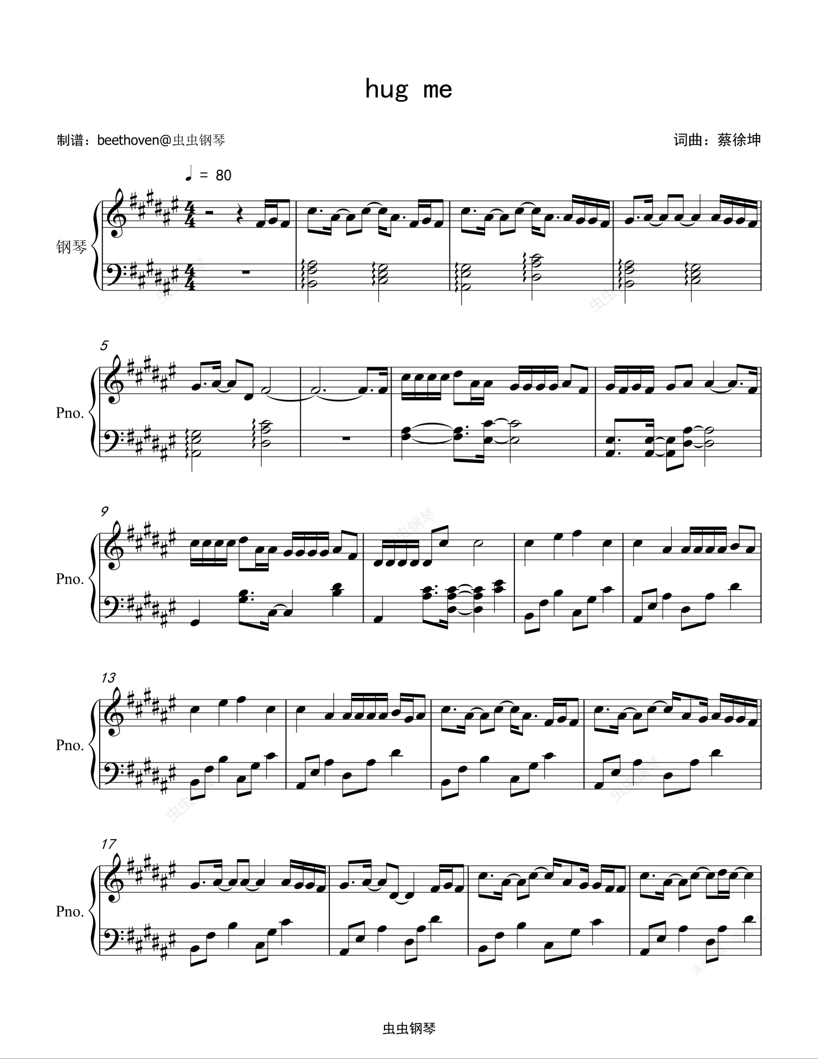 钢琴谱:Hug me-蔡徐坤(完美版)