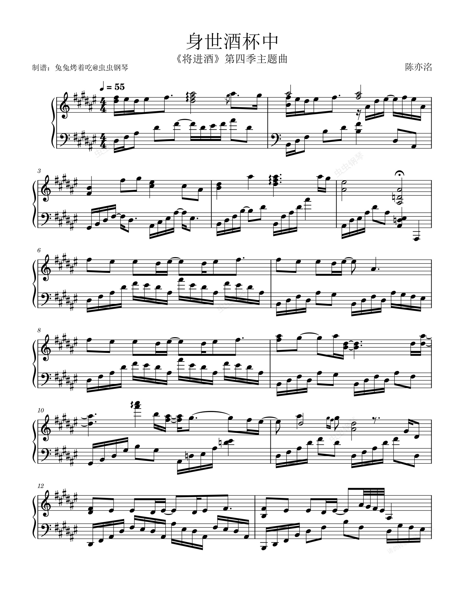 钢琴谱:《身世酒杯中》将进酒第四季主题曲 原调