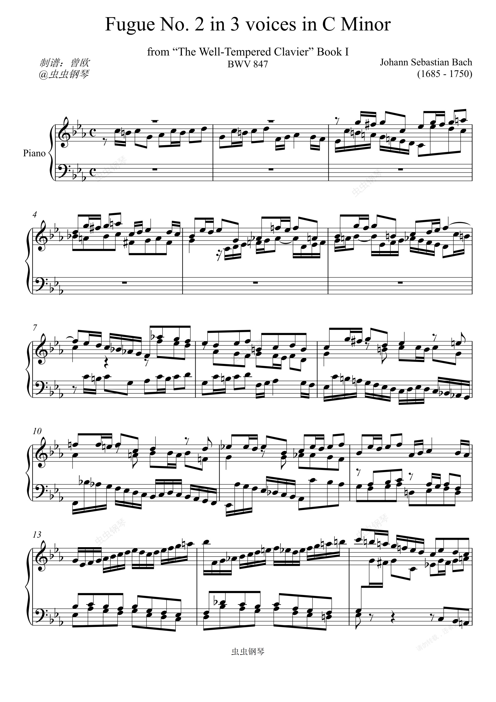 C小调第二号赋格 - 巴赫 Fugue No. 2 BWV 847 in C Minor