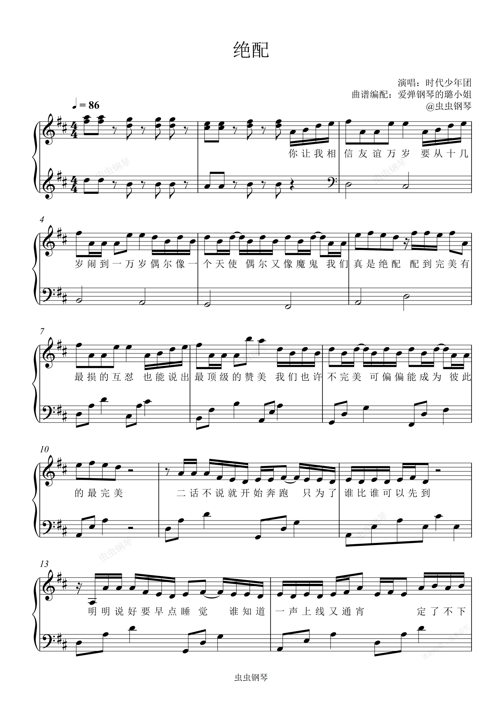 钢琴谱:绝配 - 时代少年团 - D调原调简单版 - 附歌词