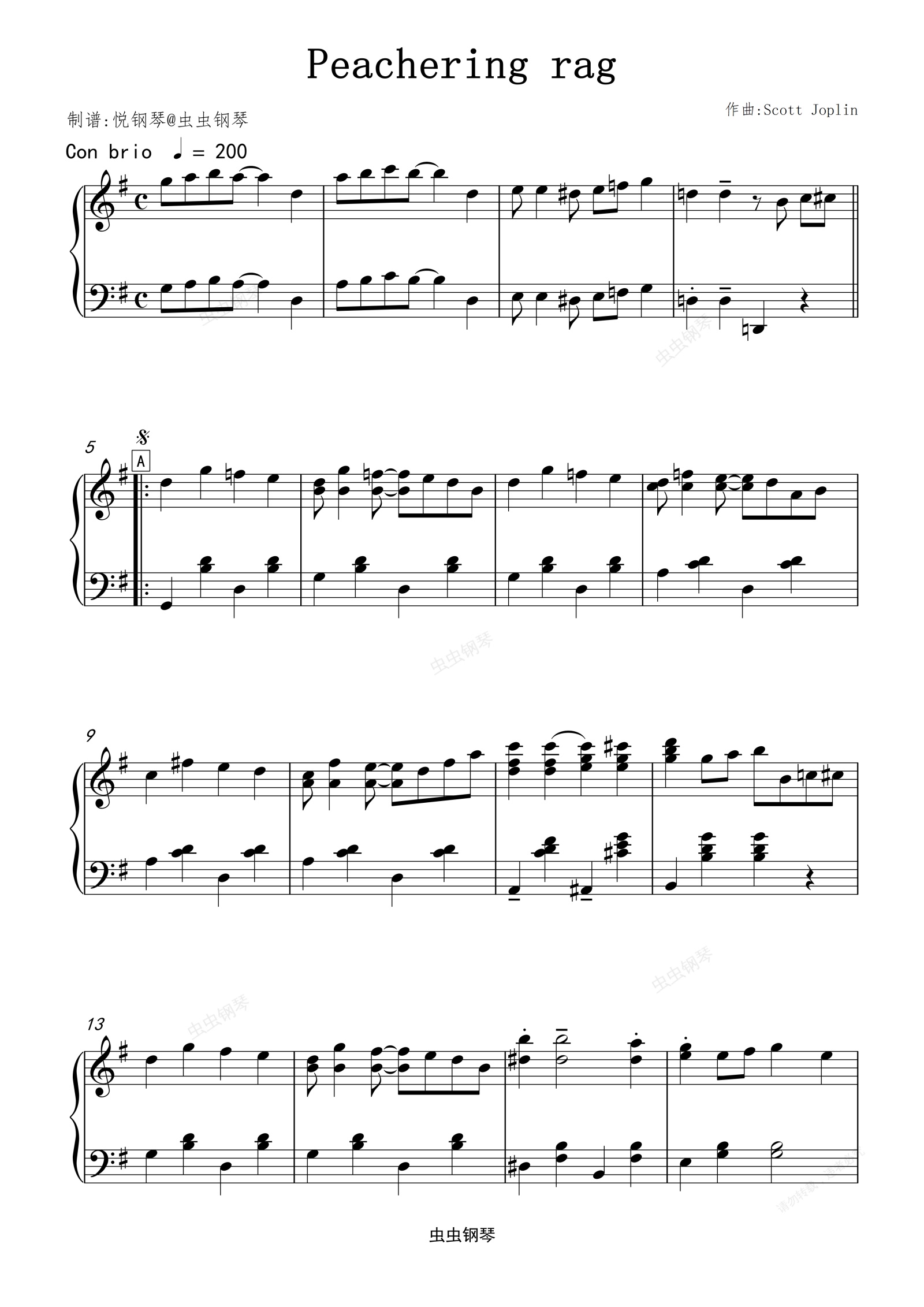 钢琴谱:Peacherine Rag 《海上钢琴师》插曲