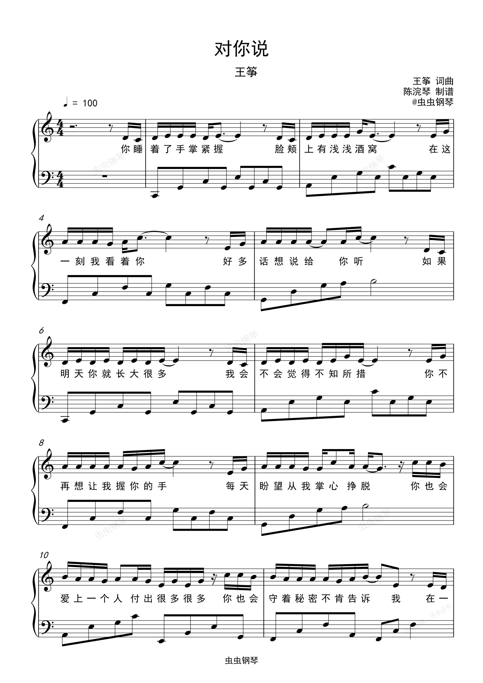 钢琴谱:对你说钢琴谱_C调五线谱_王筝