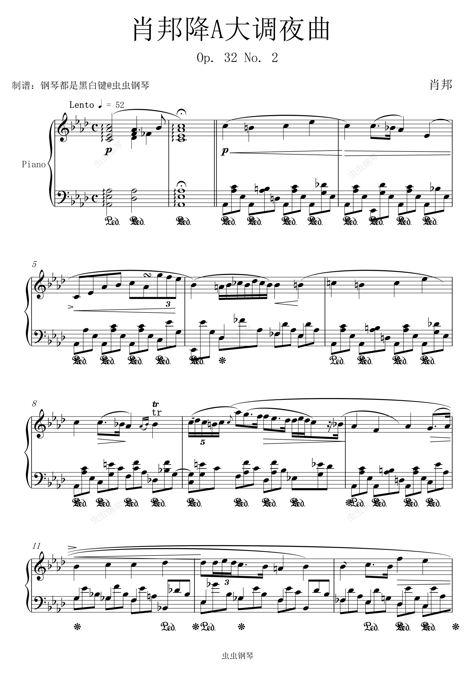 钢琴谱:肖邦 降A大调夜曲(Op.32 No.2) 【优美钢琴曲】