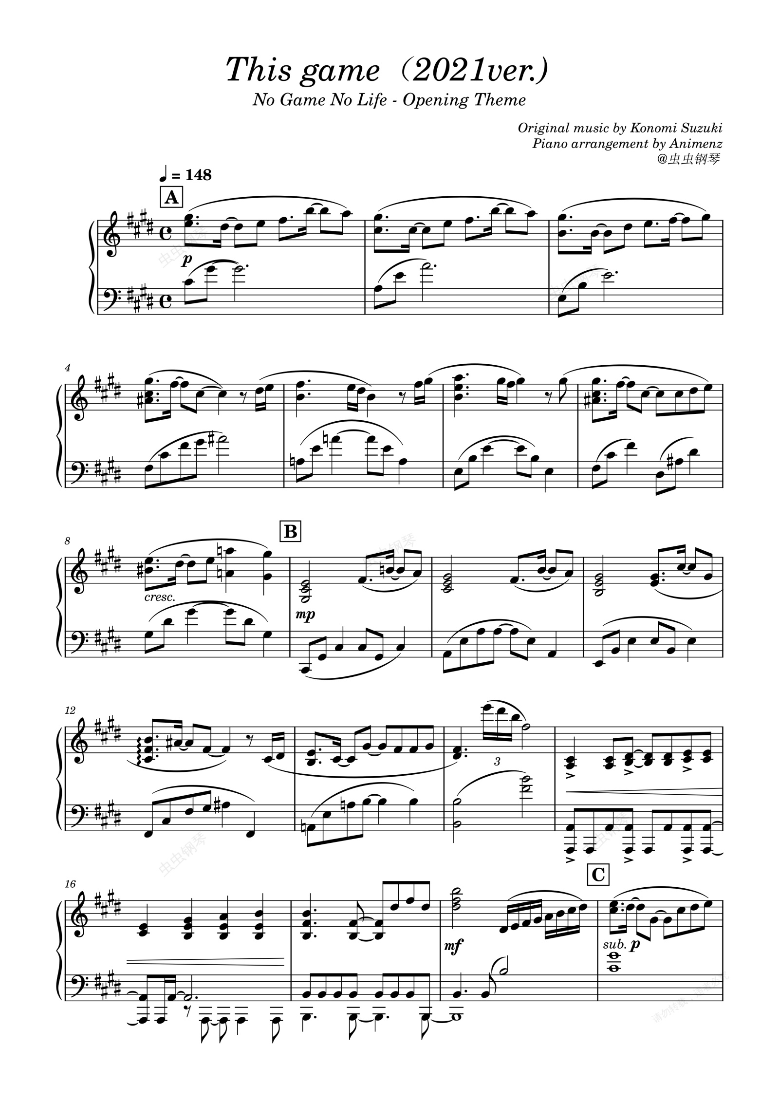 钢琴谱:【Animenz 原谱】This game - 2021(游戏人生 OP) - No Game No Life [Piano] / Konomi Suzuki