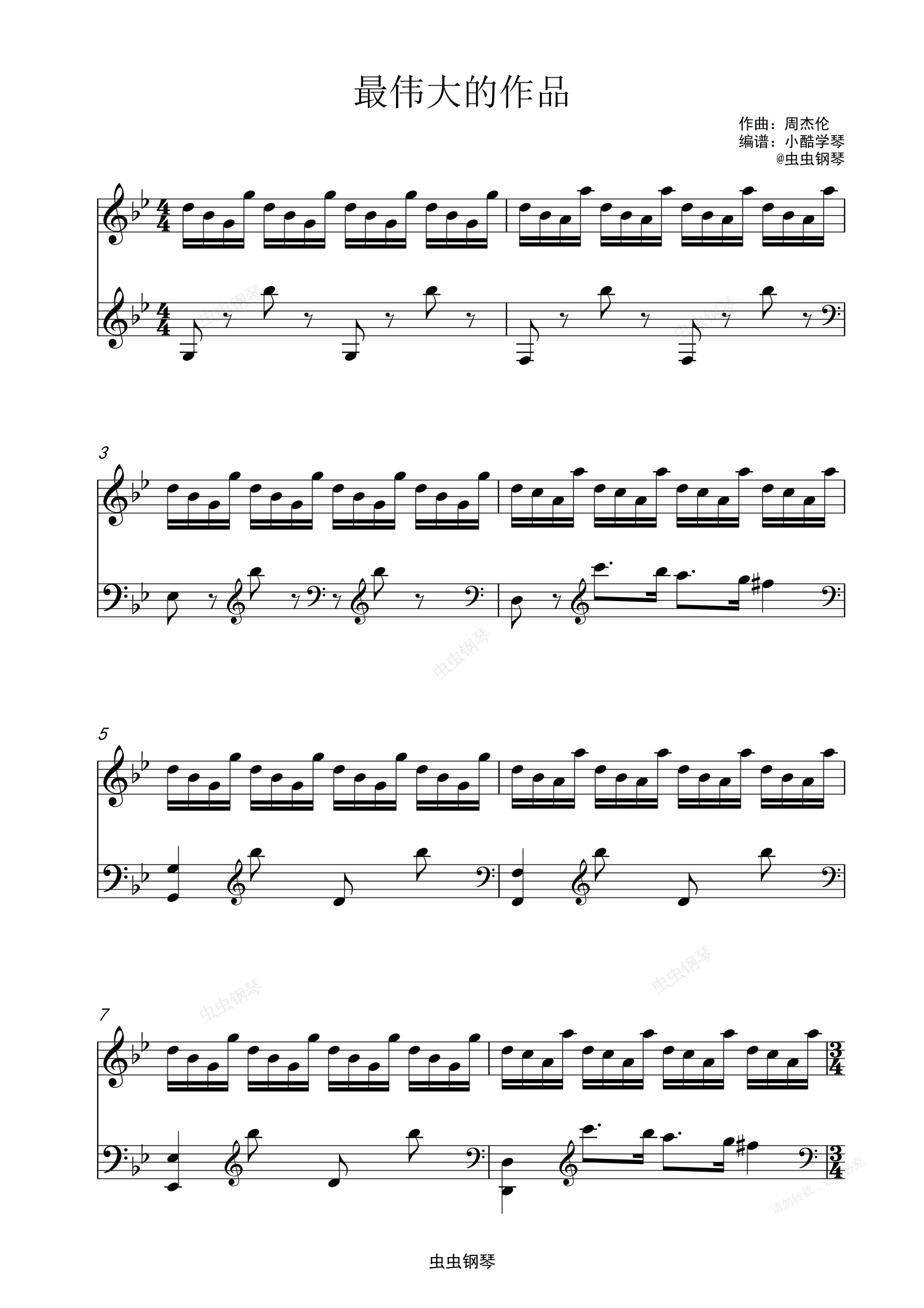 钢琴谱:《最伟大的作品》钢琴独奏精简版——主页有演示视频