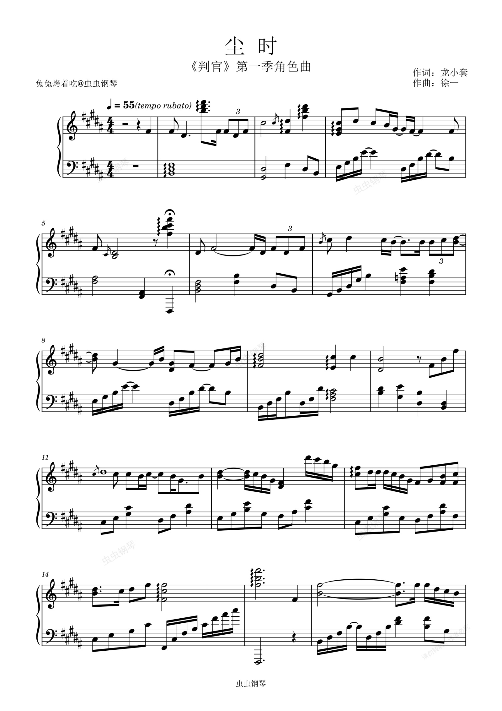 钢琴谱:《尘时》判官第一季角色曲 原调