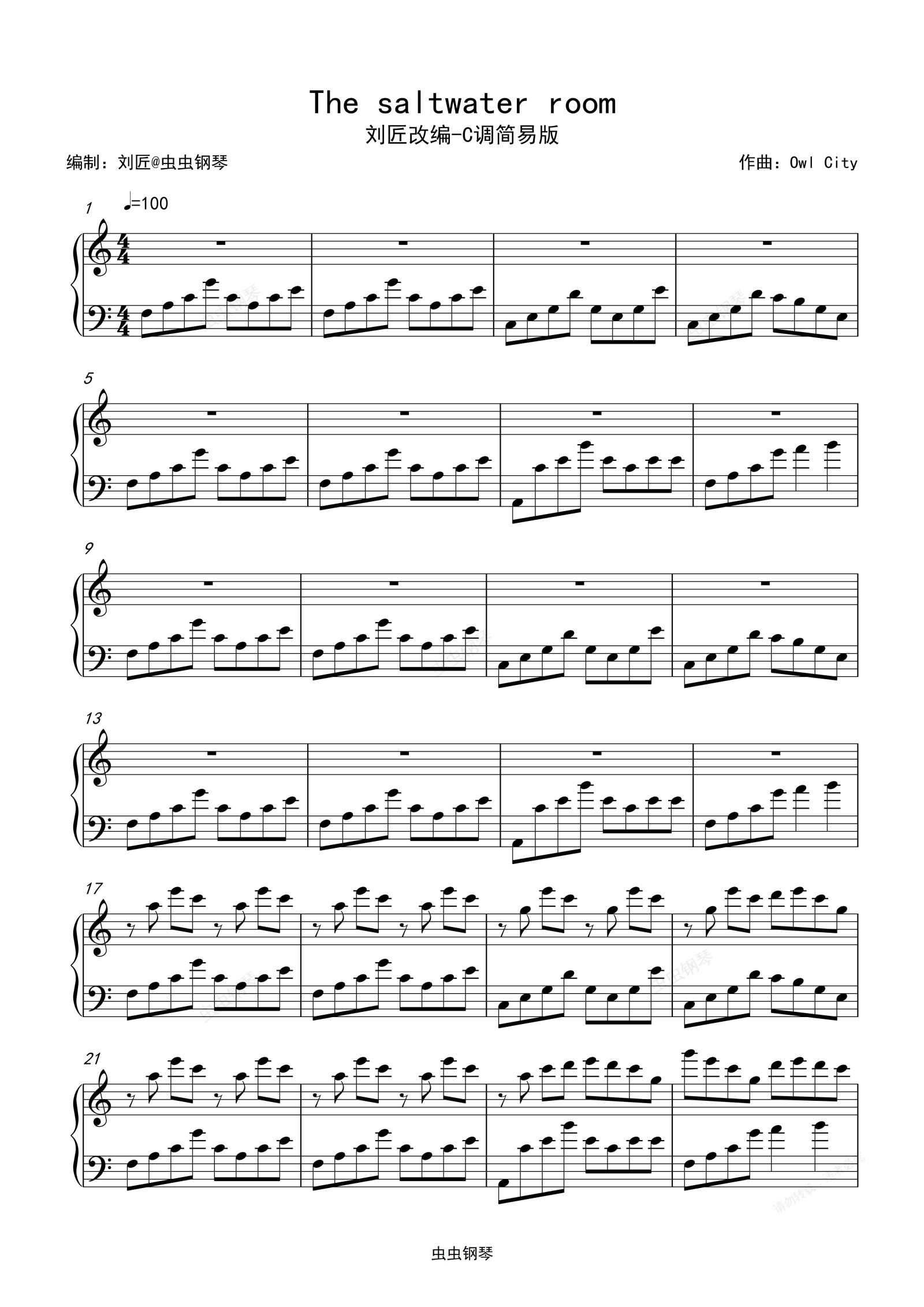 钢琴谱:【首发】《The Saltwater Room》-刘匠编制-C调简单版