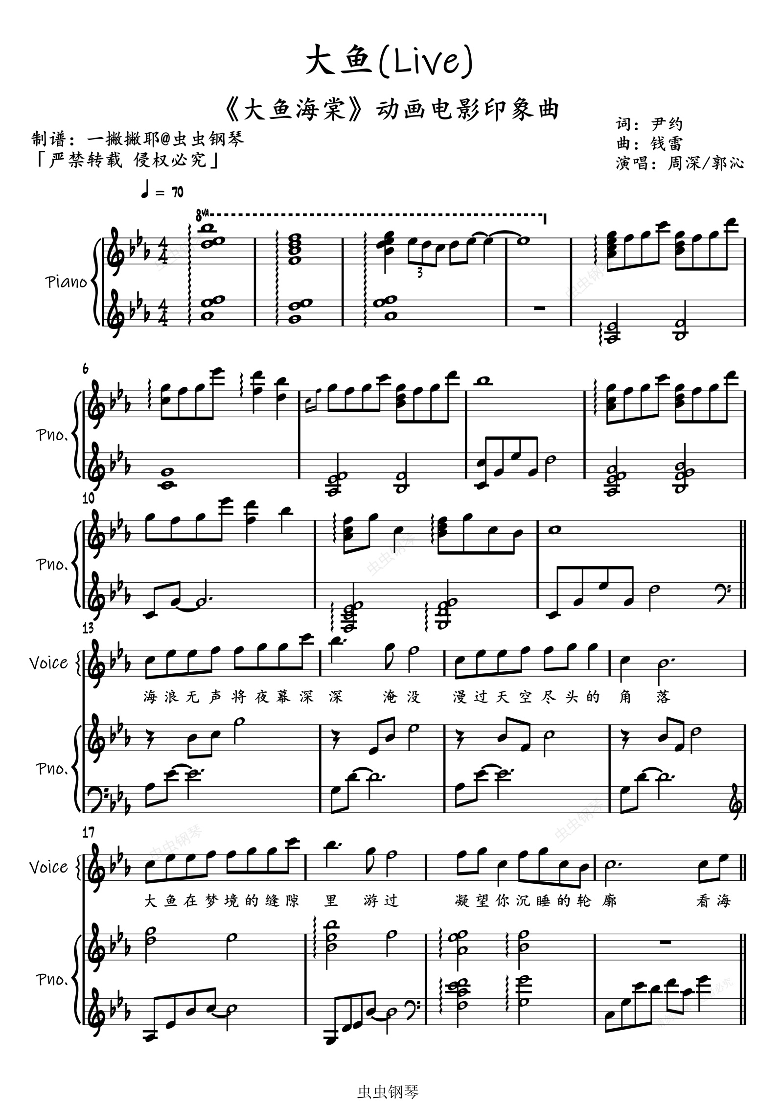 钢琴谱:大鱼(Live)【弹唱谱】周深/郭沁《中国新歌声》「一撇撇耶」