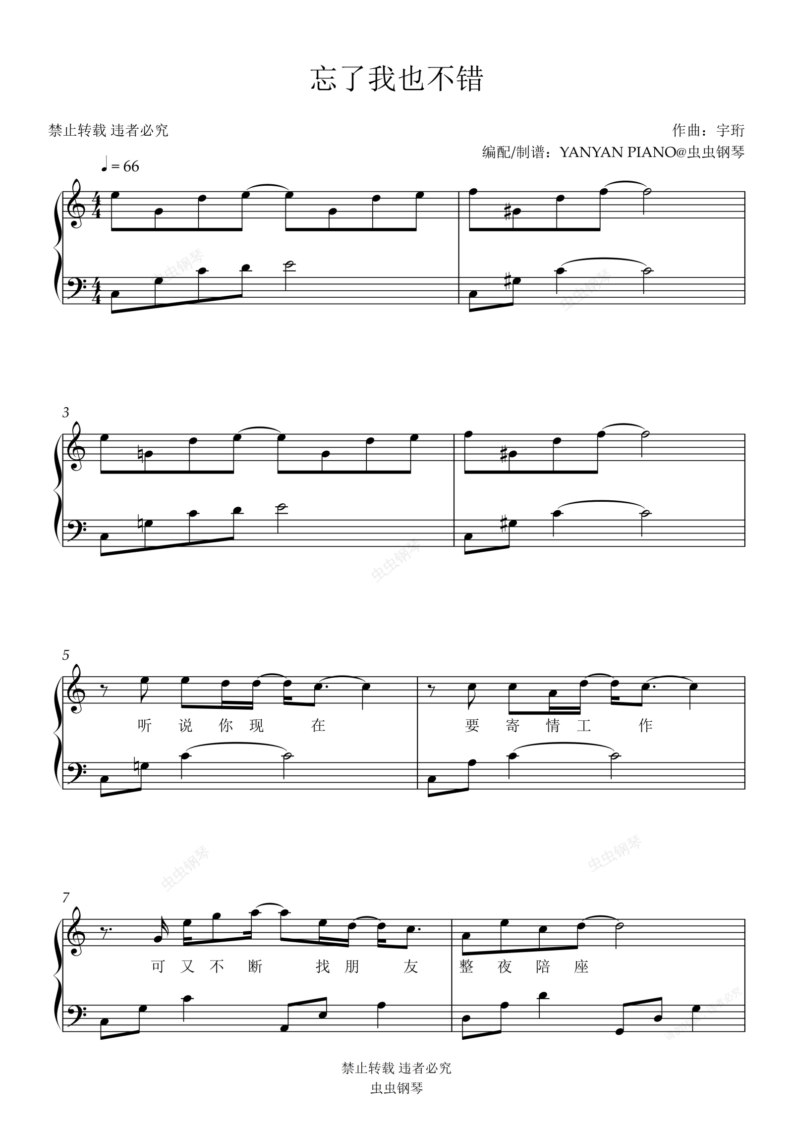 钢琴谱:好听易弹【忘了我也不错】王心凌