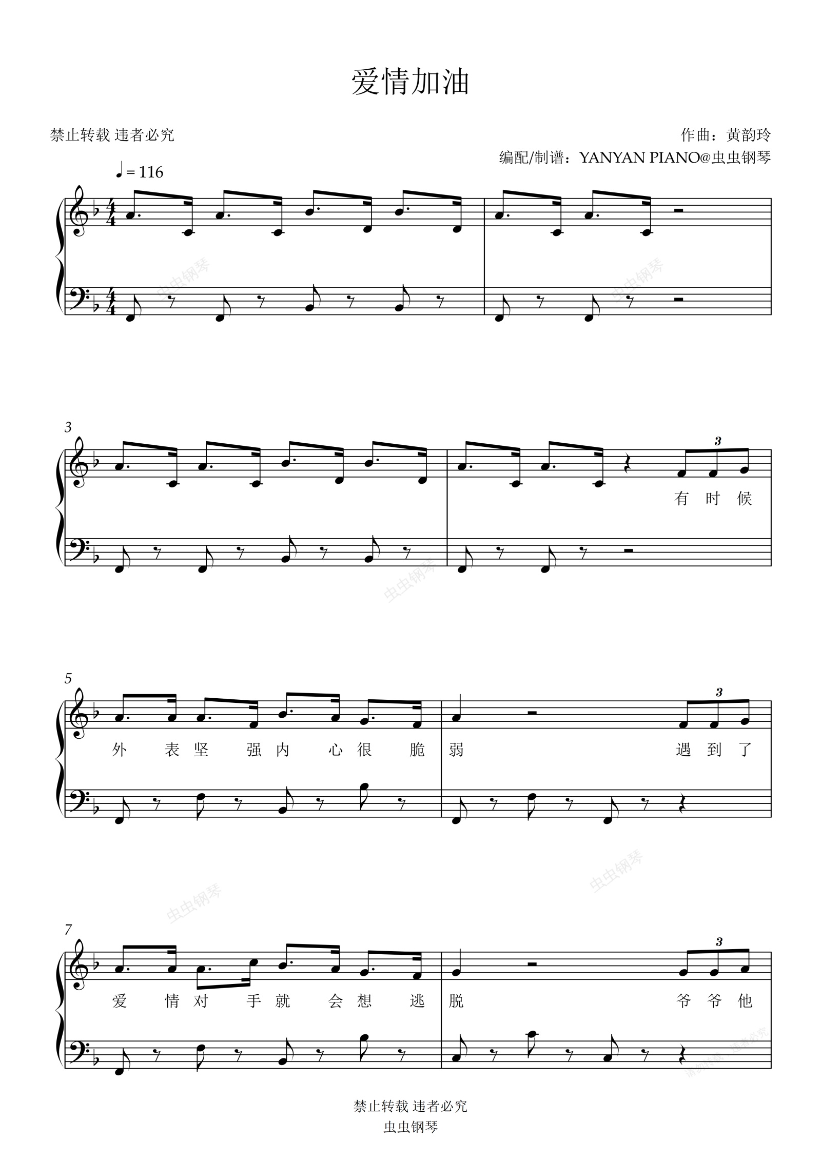 钢琴谱:好听易弹【爱情加油】王心凌《天国的嫁衣》插曲