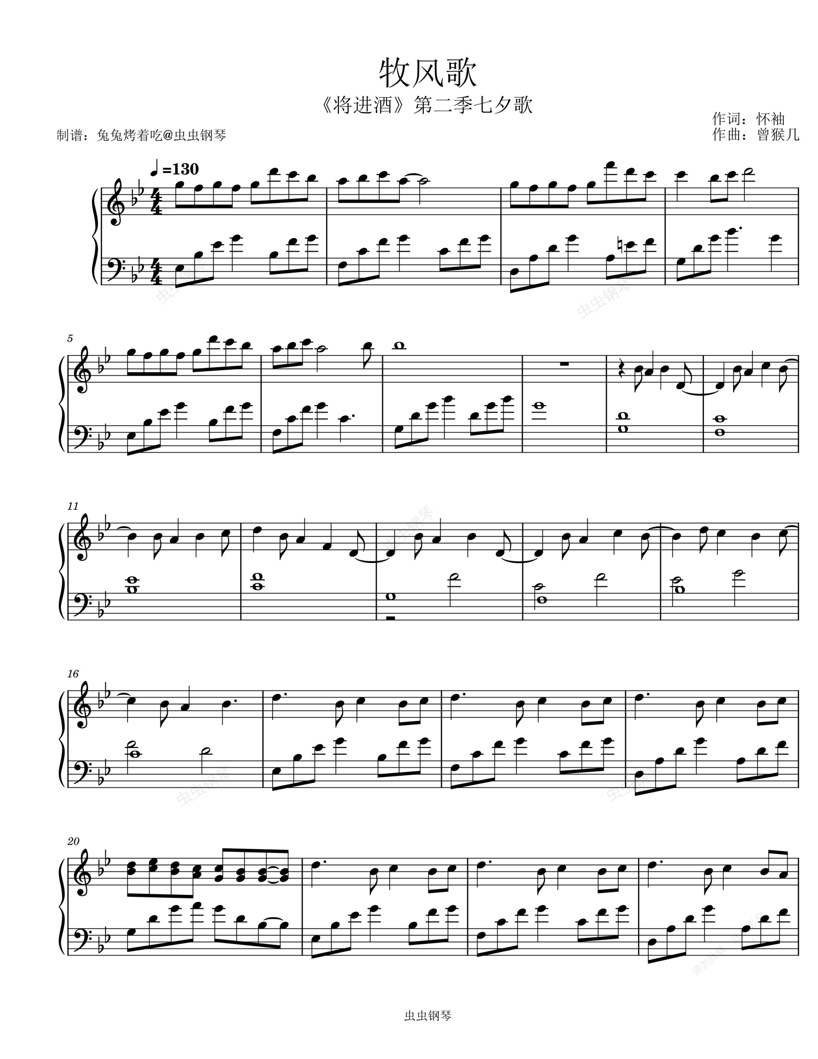 钢琴谱:《牧风歌》将进酒第二季七夕歌