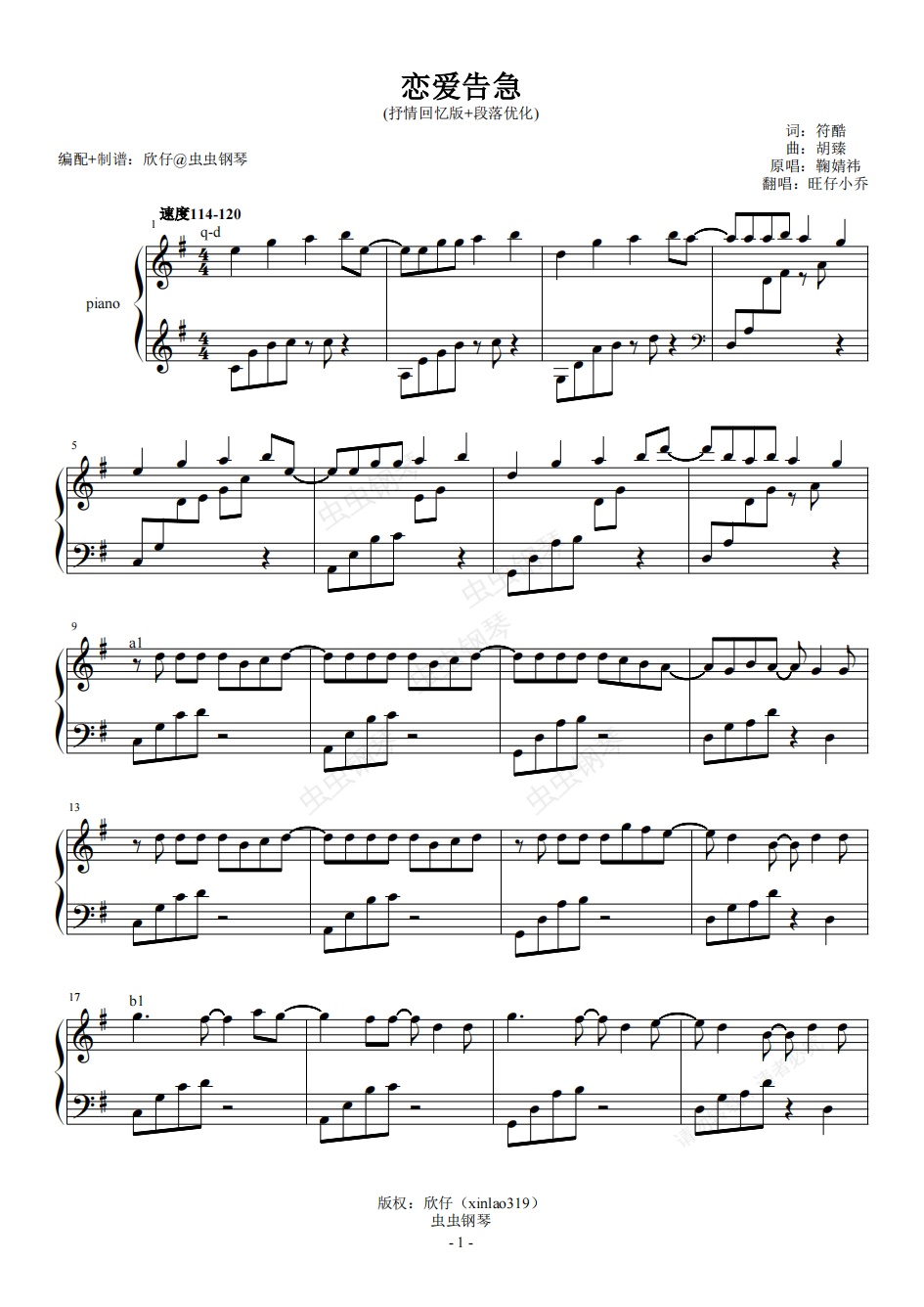 钢琴谱:鞠婧祎/旺仔小乔-G《恋爱告急》(抒情回忆版+段落优化)