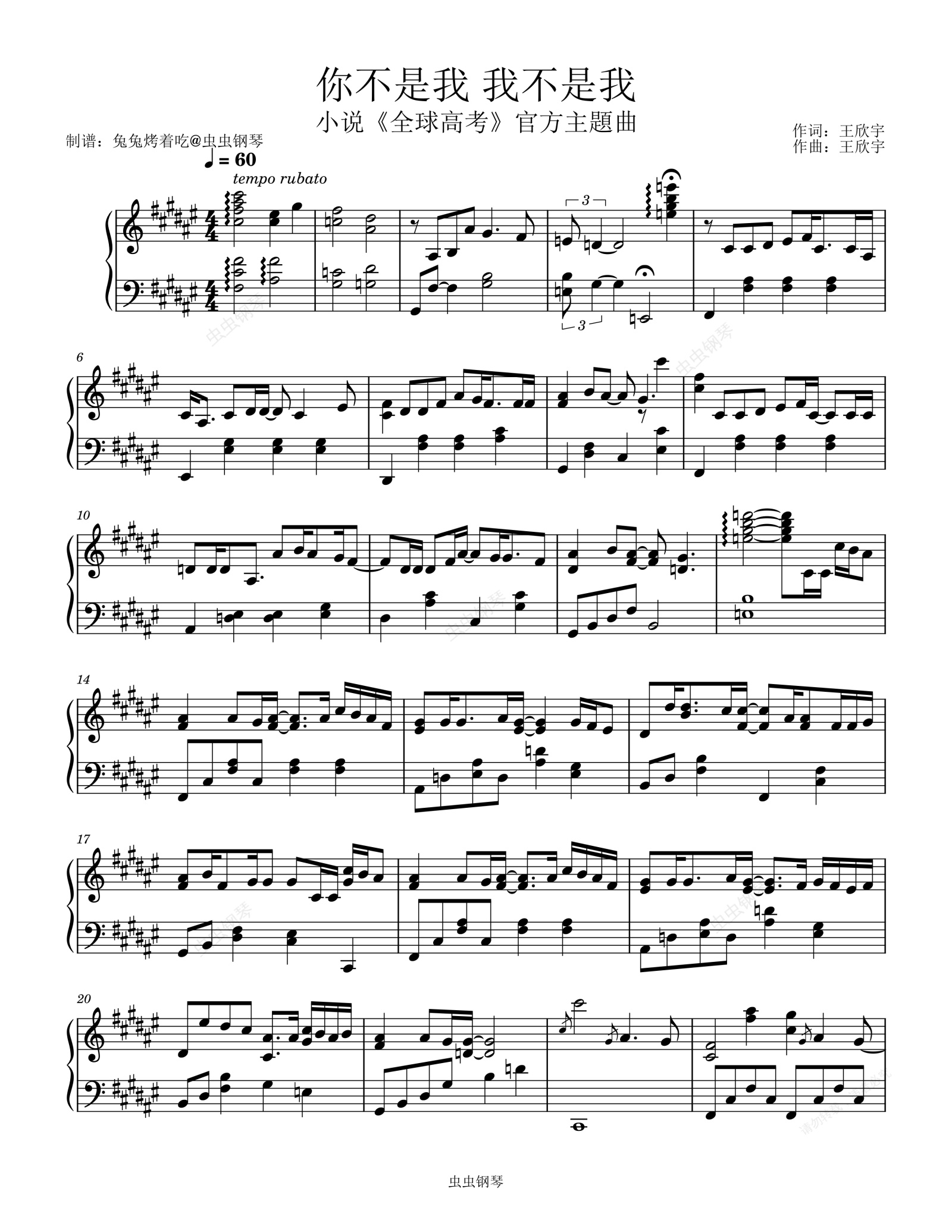 钢琴谱:《你不是我 我不是我》全球高考小说漫画官方主題曲原调