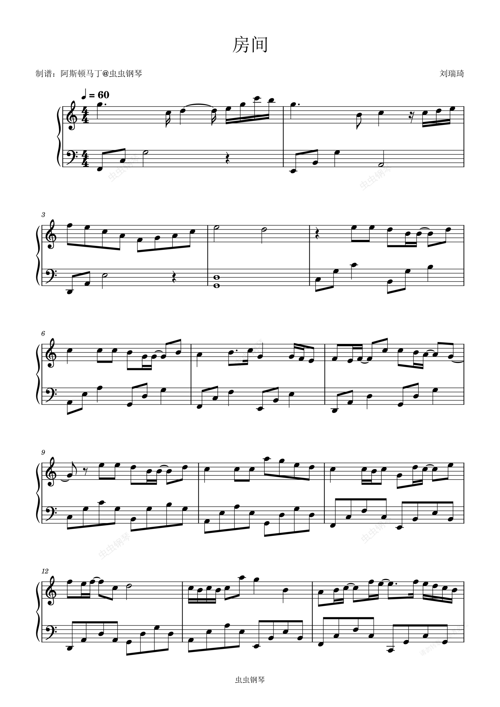 钢琴谱:房间 - 刘瑞琦 (Richael Liu)
