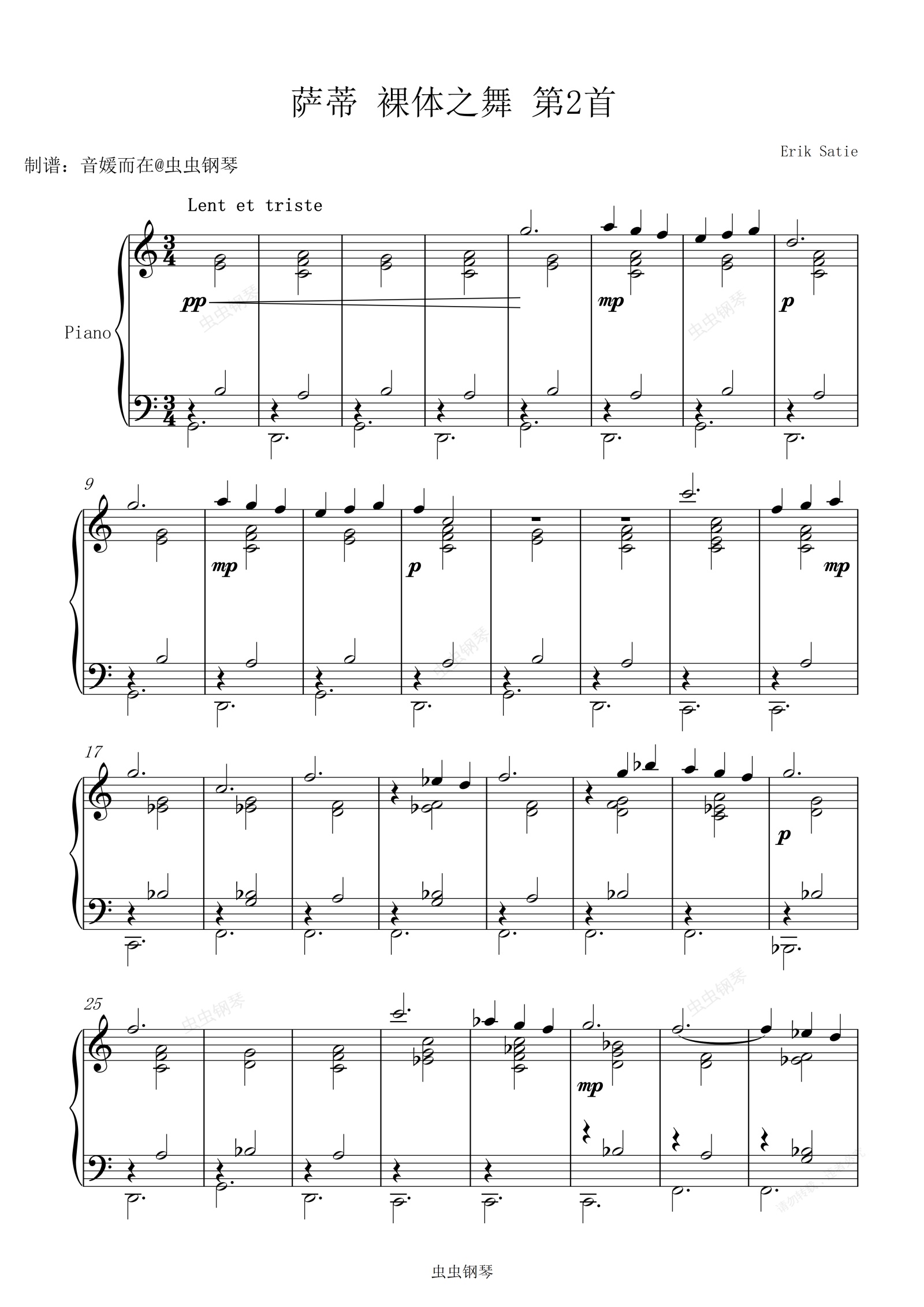 钢琴谱:萨蒂 裸体之舞 第2首 - 【超优美书房音乐】