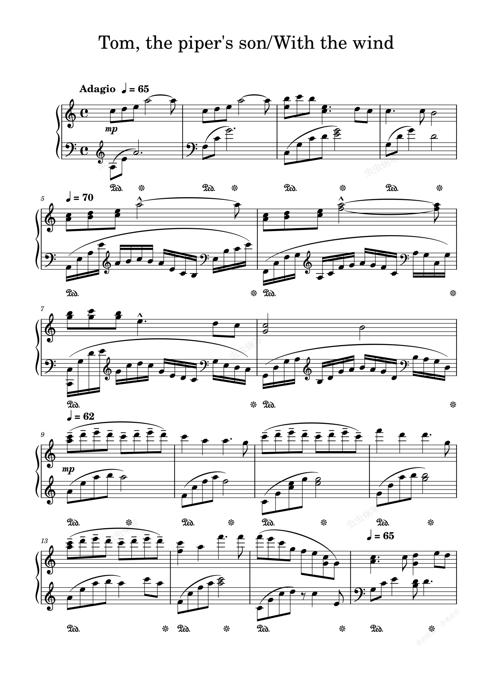 钢琴谱:黑执事第三季马戏团篇片尾曲—With the Wind / Tom, the piper's son