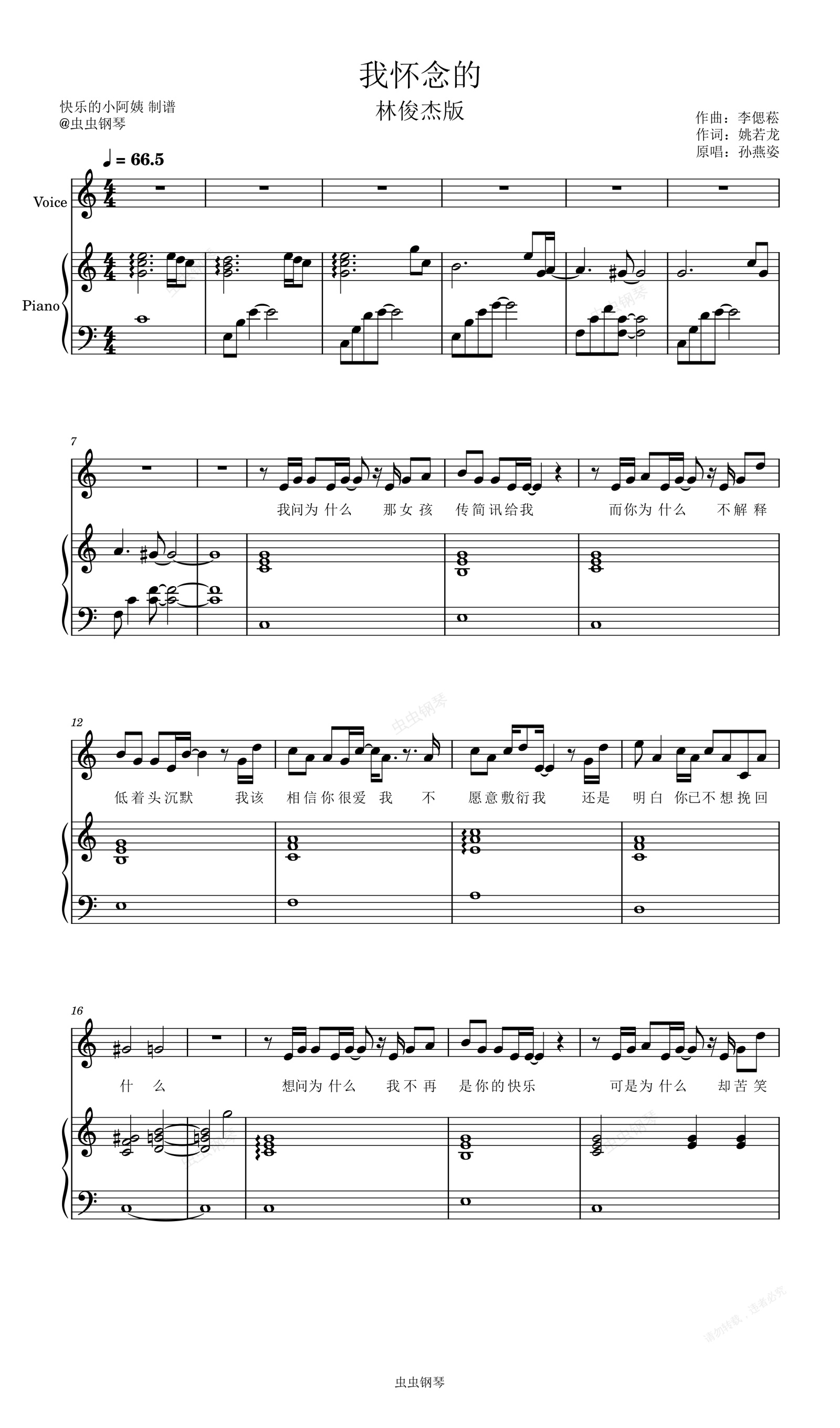 钢琴谱:我怀念的(弹唱版) - 林俊杰