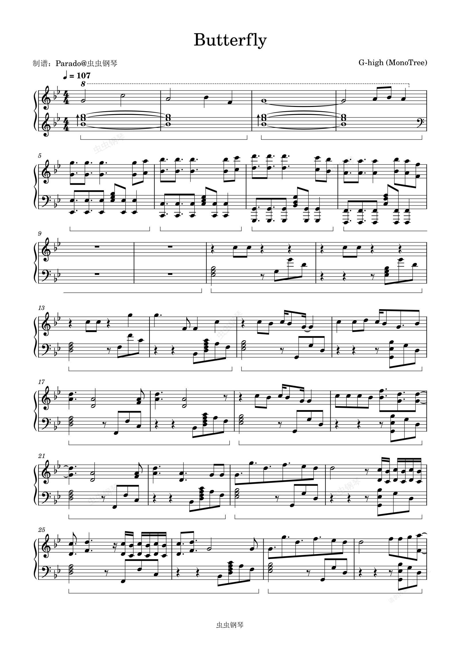 钢琴谱:【极限还原】Butterfly - 本月少女