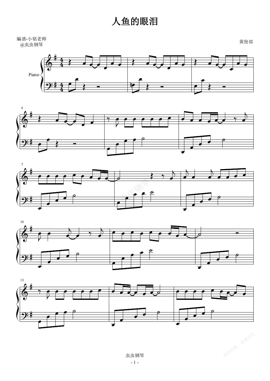 钢琴谱:人鱼的眼泪 【简易 动听】
