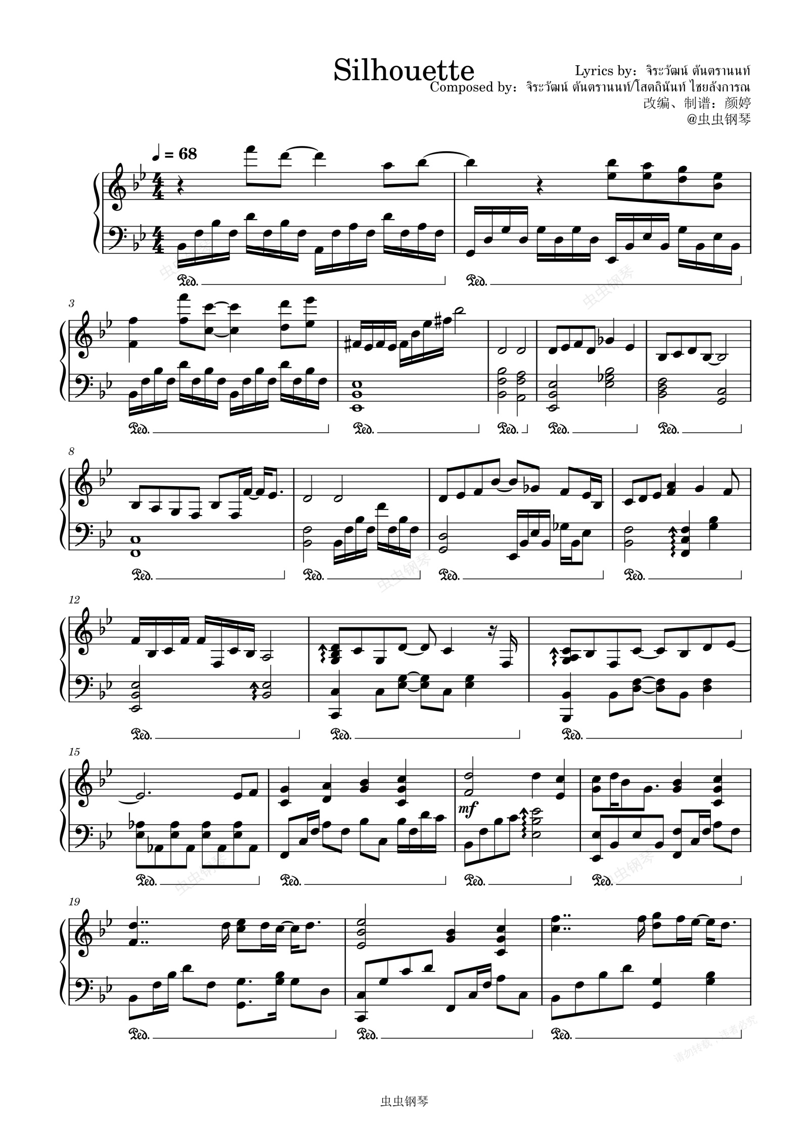 钢琴谱:泰版流星花园《แสงที่ปลายฟ้า (Silhouette) 》 —วิน เมธวิน