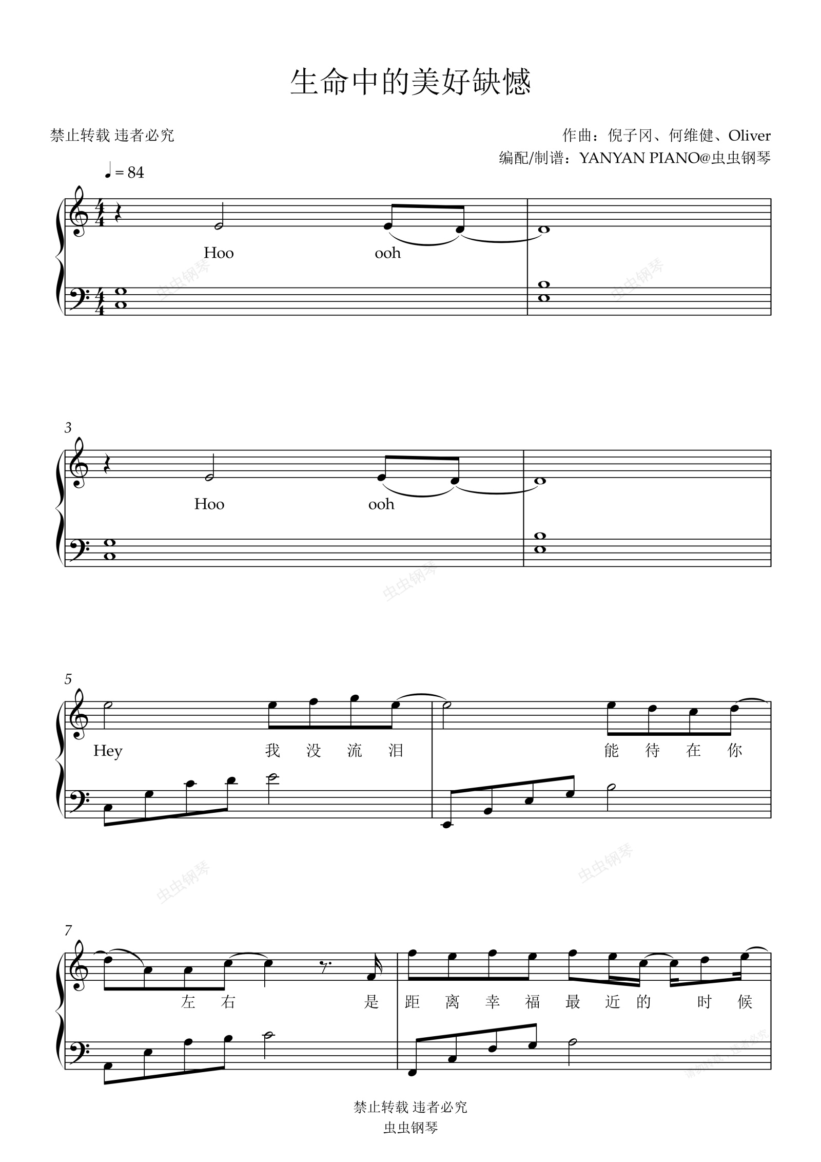 钢琴谱:好听易弹【生命中的美好缺憾】王心凌