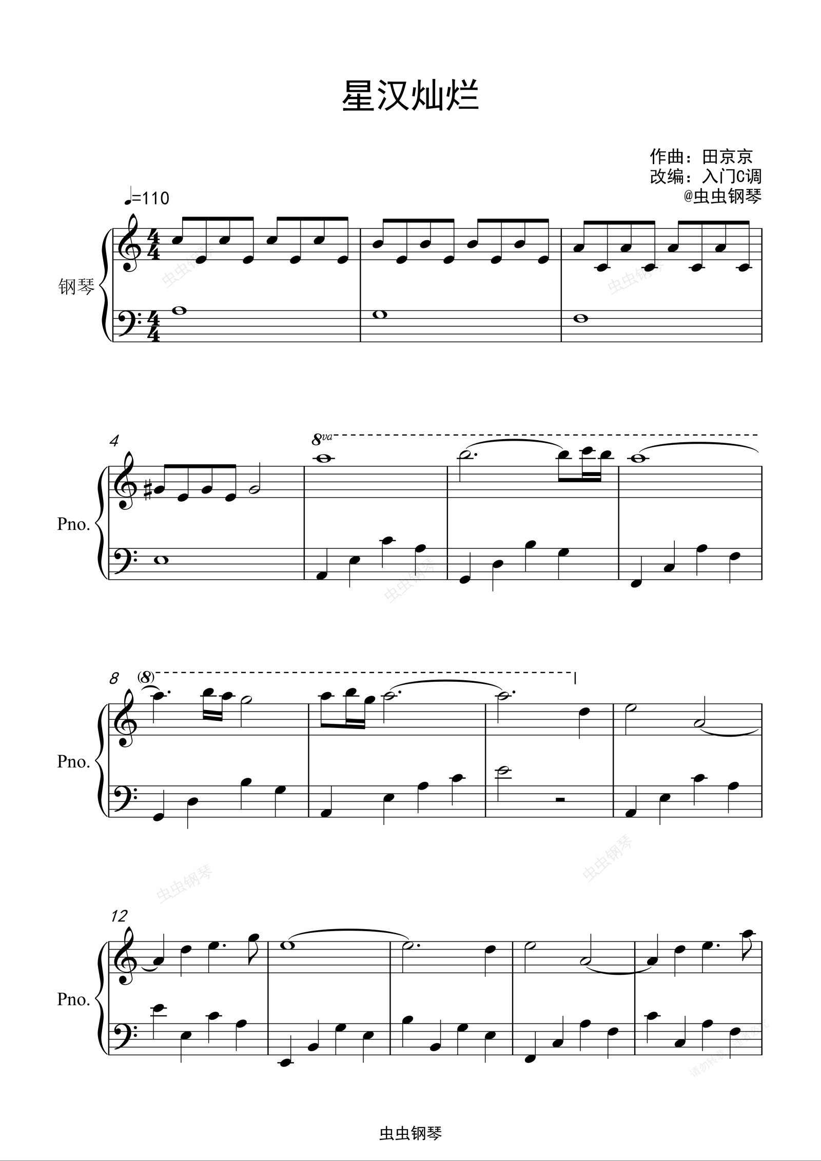 钢琴谱:《星汉灿烂》主题曲《星汉灿烂》入门C调简单版