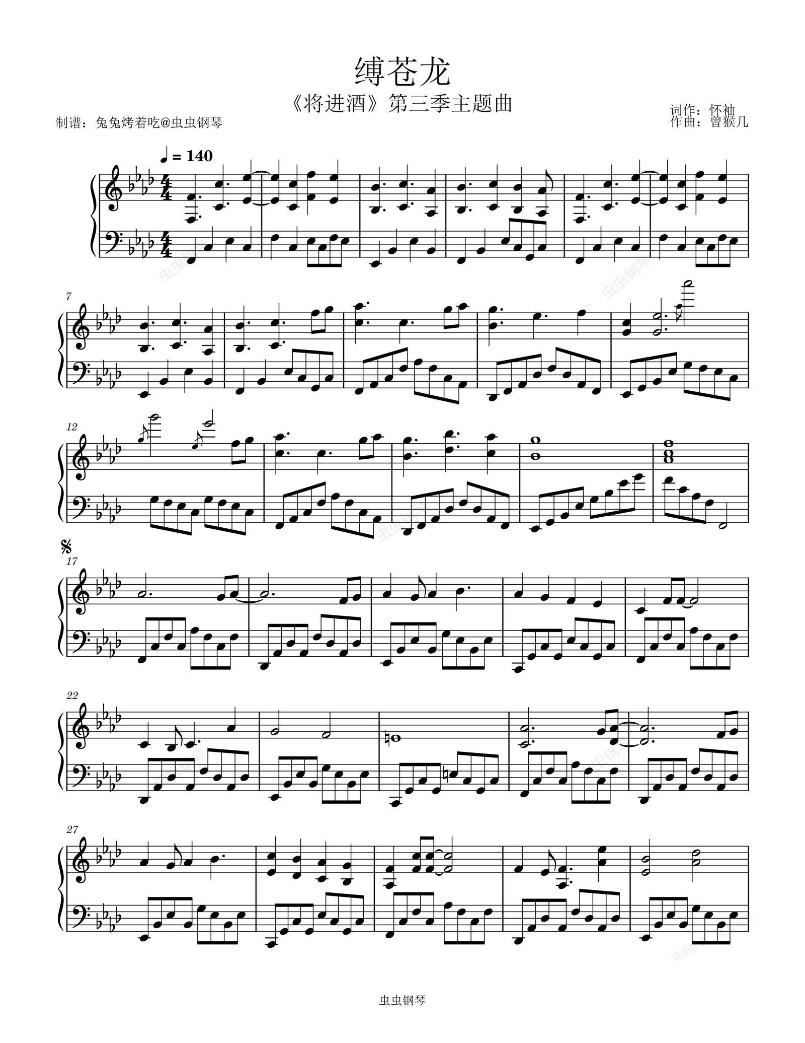 钢琴谱:《缚苍龙》将进酒第三季主题曲
