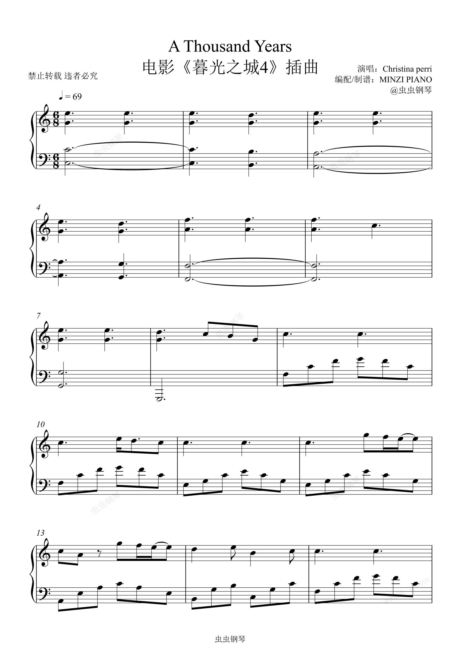 钢琴谱:暮光之城《A Thousand Years》 Christina Perri