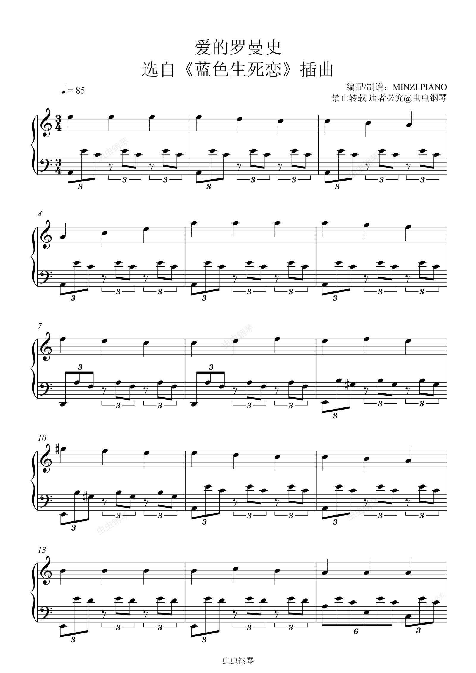 钢琴谱:《爱的罗曼史》蓝色生死恋插曲