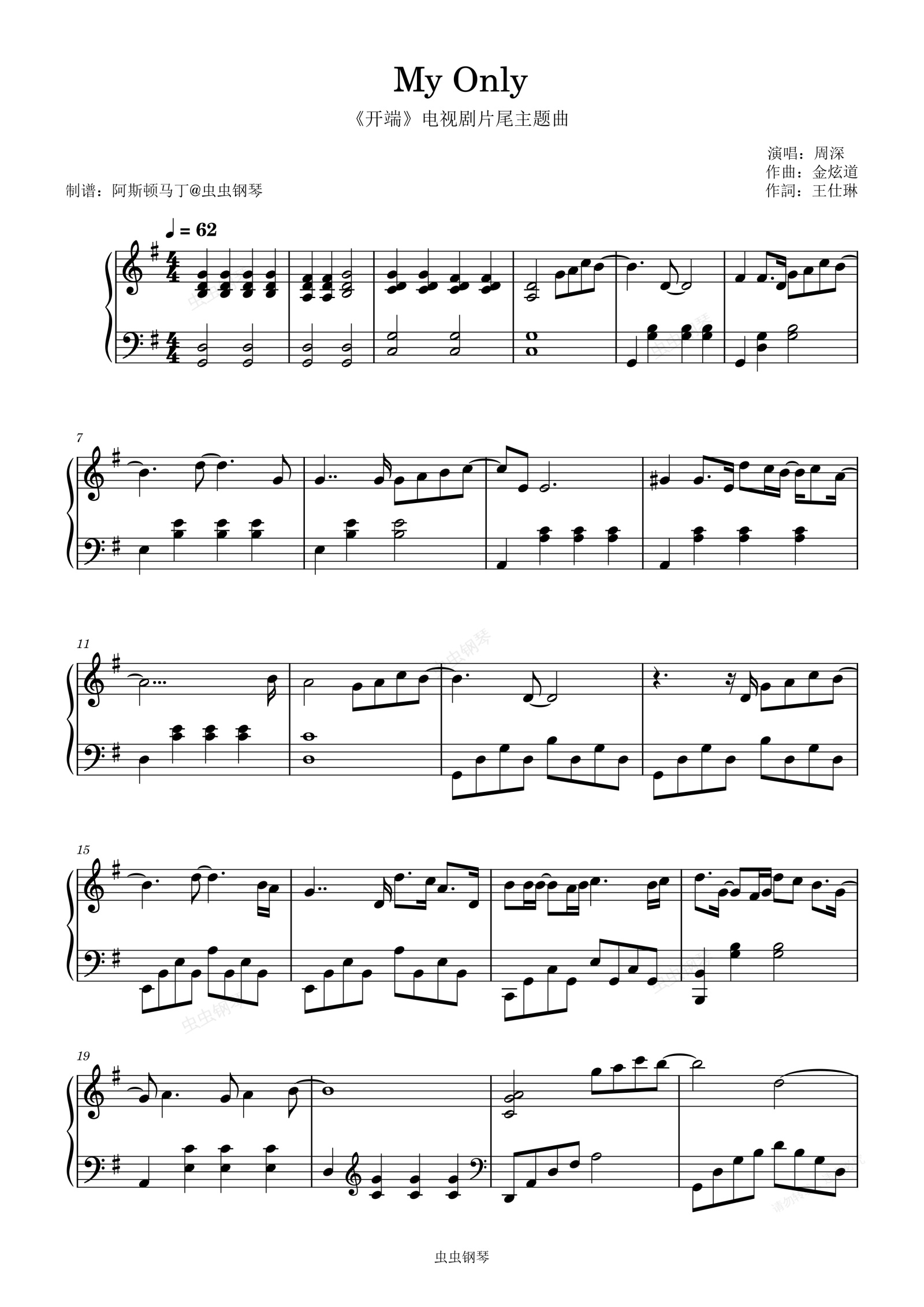 钢琴谱:My Only (《开端》电视剧片尾主题曲) - 周深
