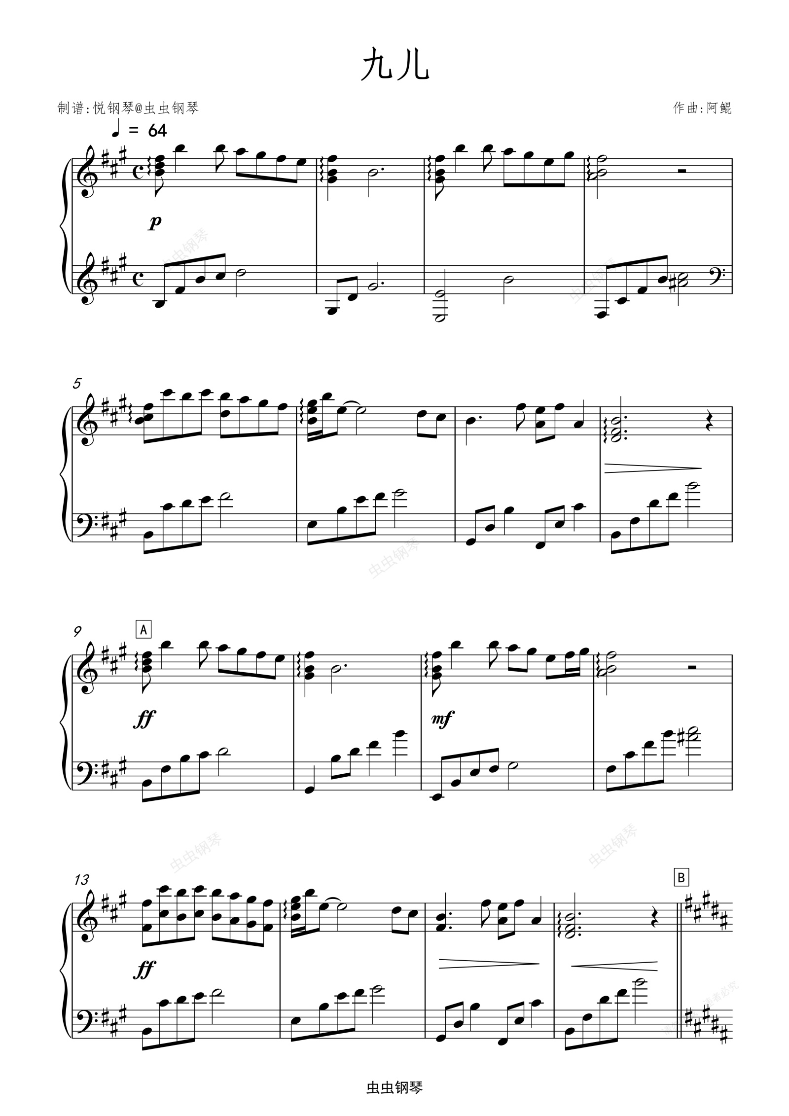 钢琴谱:九儿(电视剧《红高粱》主题曲)
