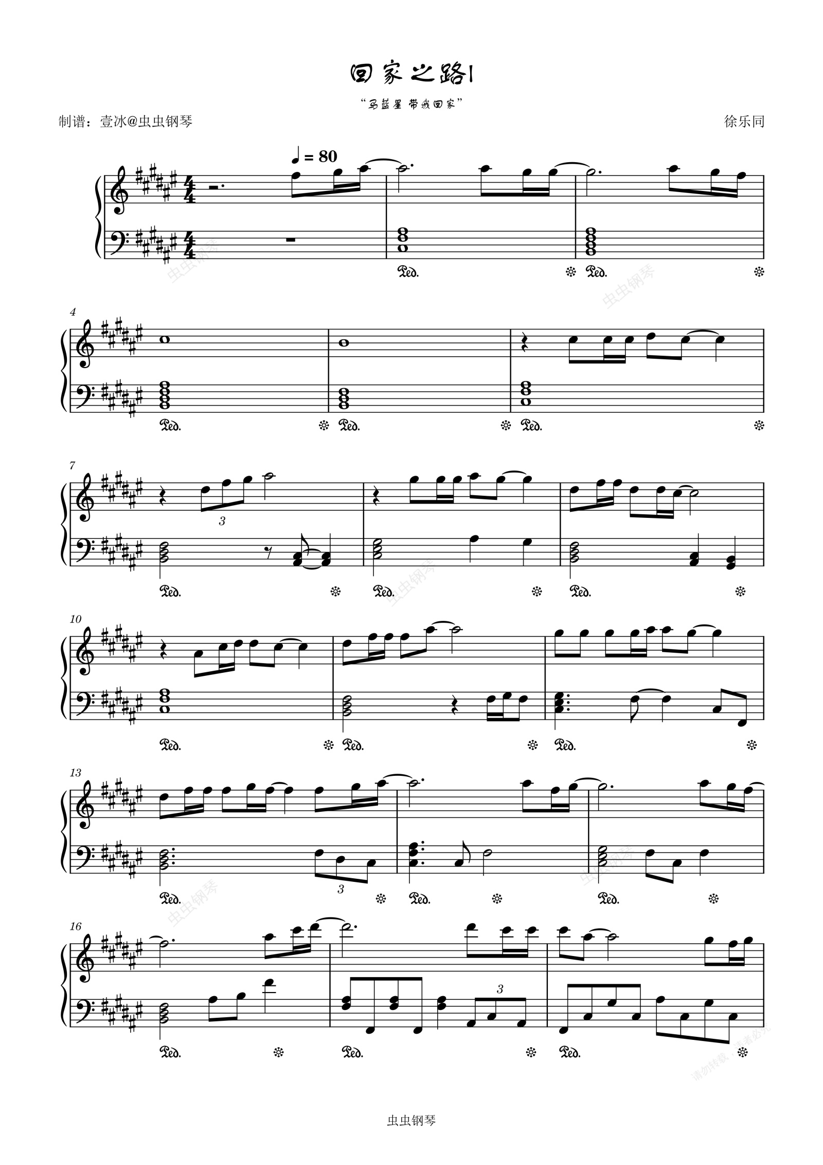 钢琴谱:回家之路I//《独行月球》电影插曲-原调版