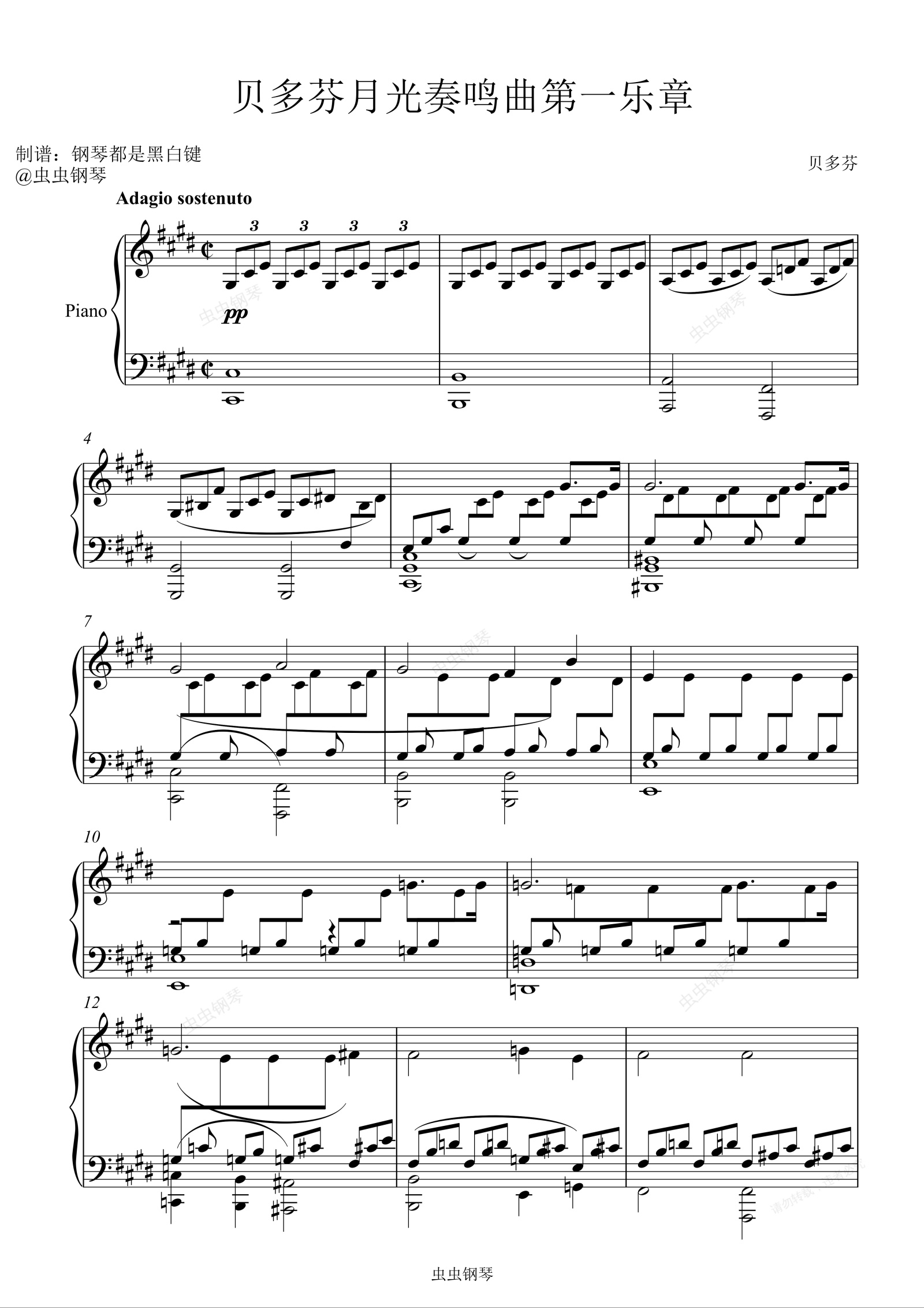 钢琴谱:贝多芬月光奏鸣曲第一乐章 【原版谱】