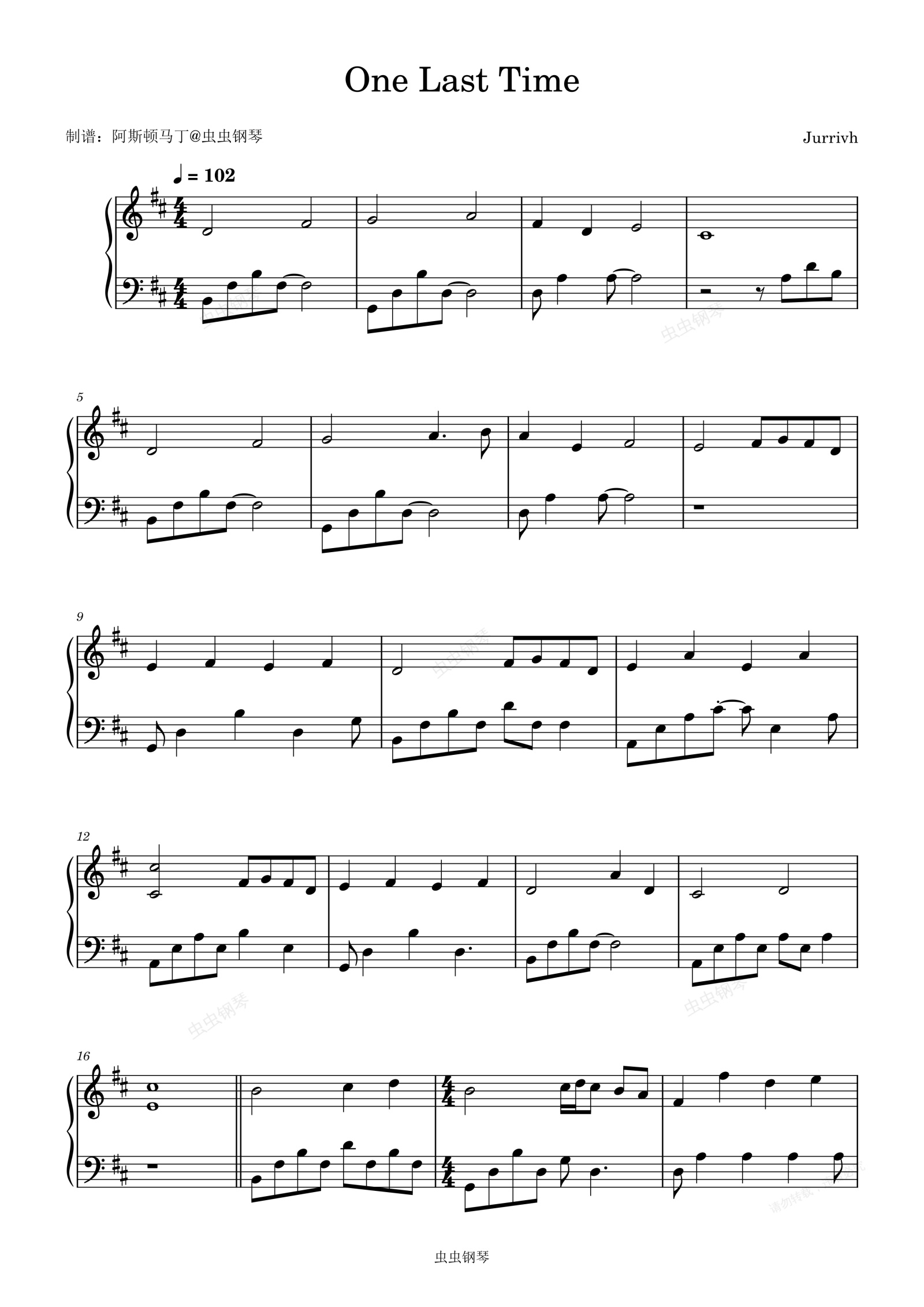 钢琴谱:《One Last Time》 - Ariana Grande (爱莉安娜·格兰德)