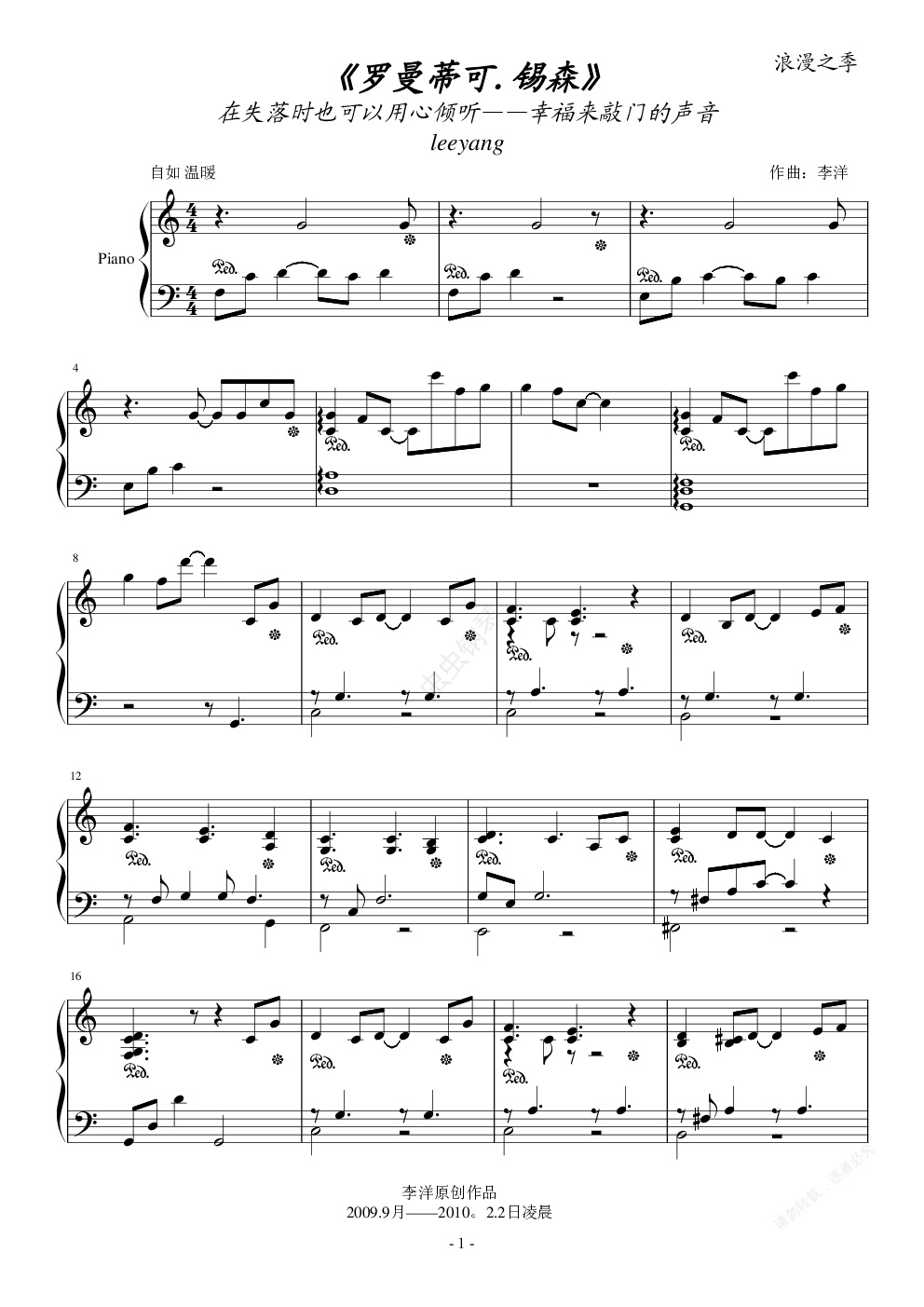钢琴谱:《罗曼蒂可.锡森》