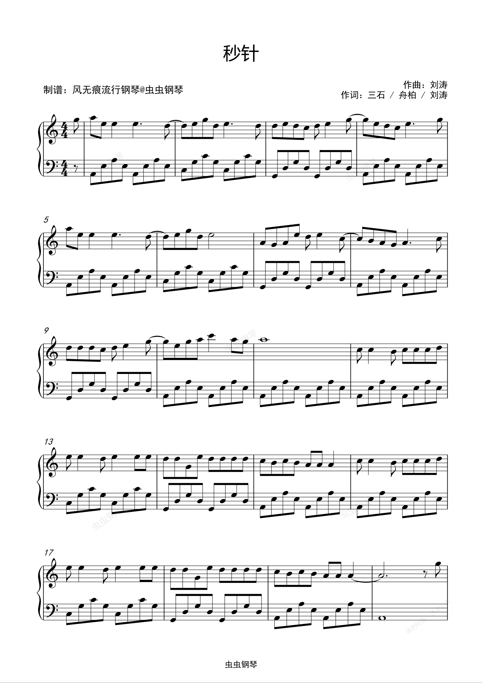 钢琴谱:C调-秒针-李克勤 / 王赫野