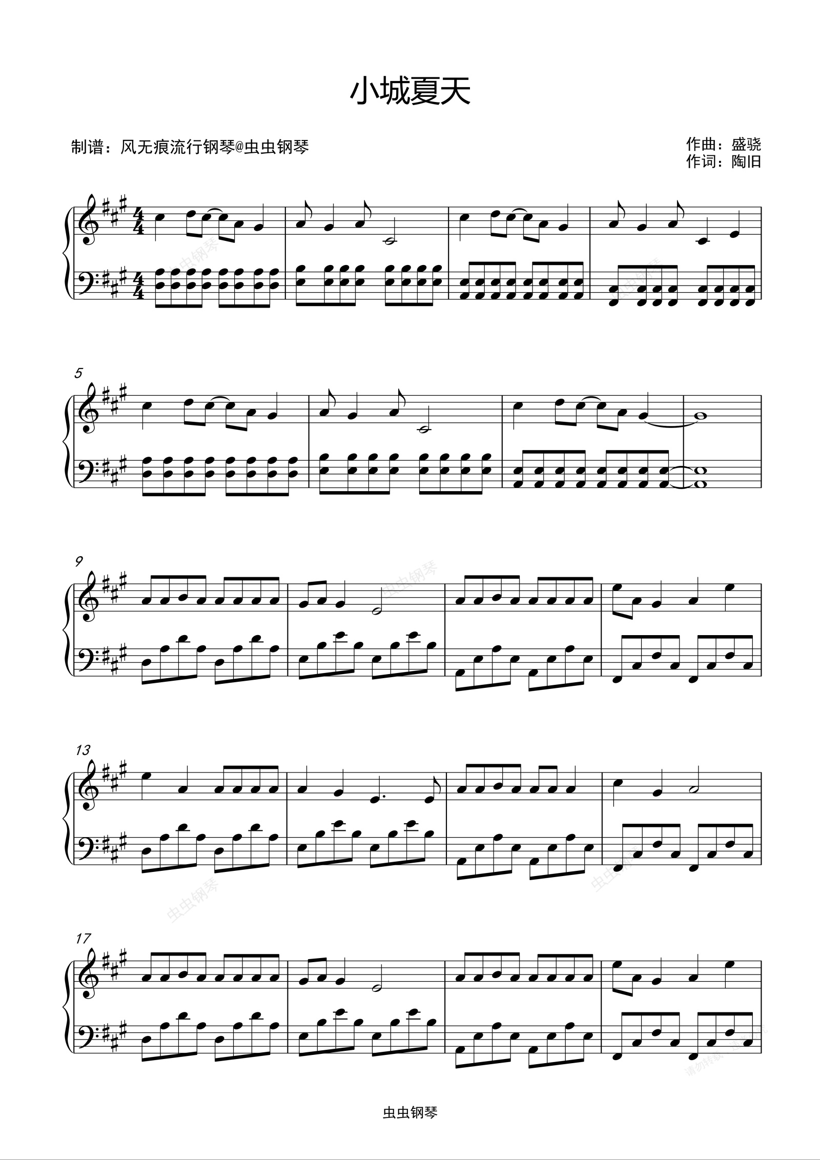 钢琴谱:A大调-小城夏天-LBI利比