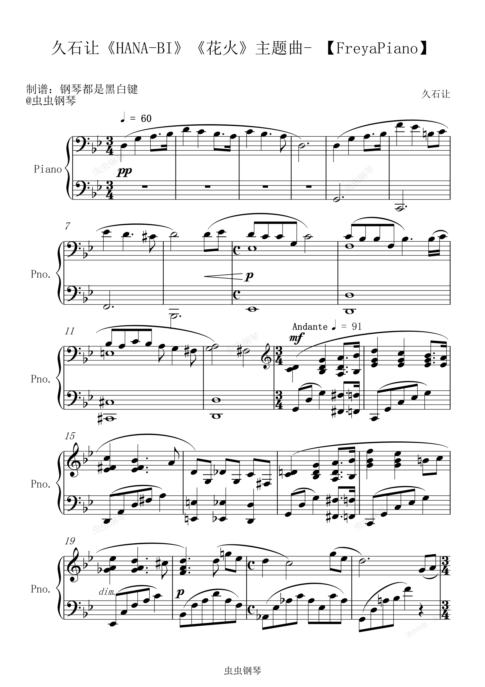 钢琴谱:久石让《HANA-BI》《花火》主题曲- 【FreyaPiano】