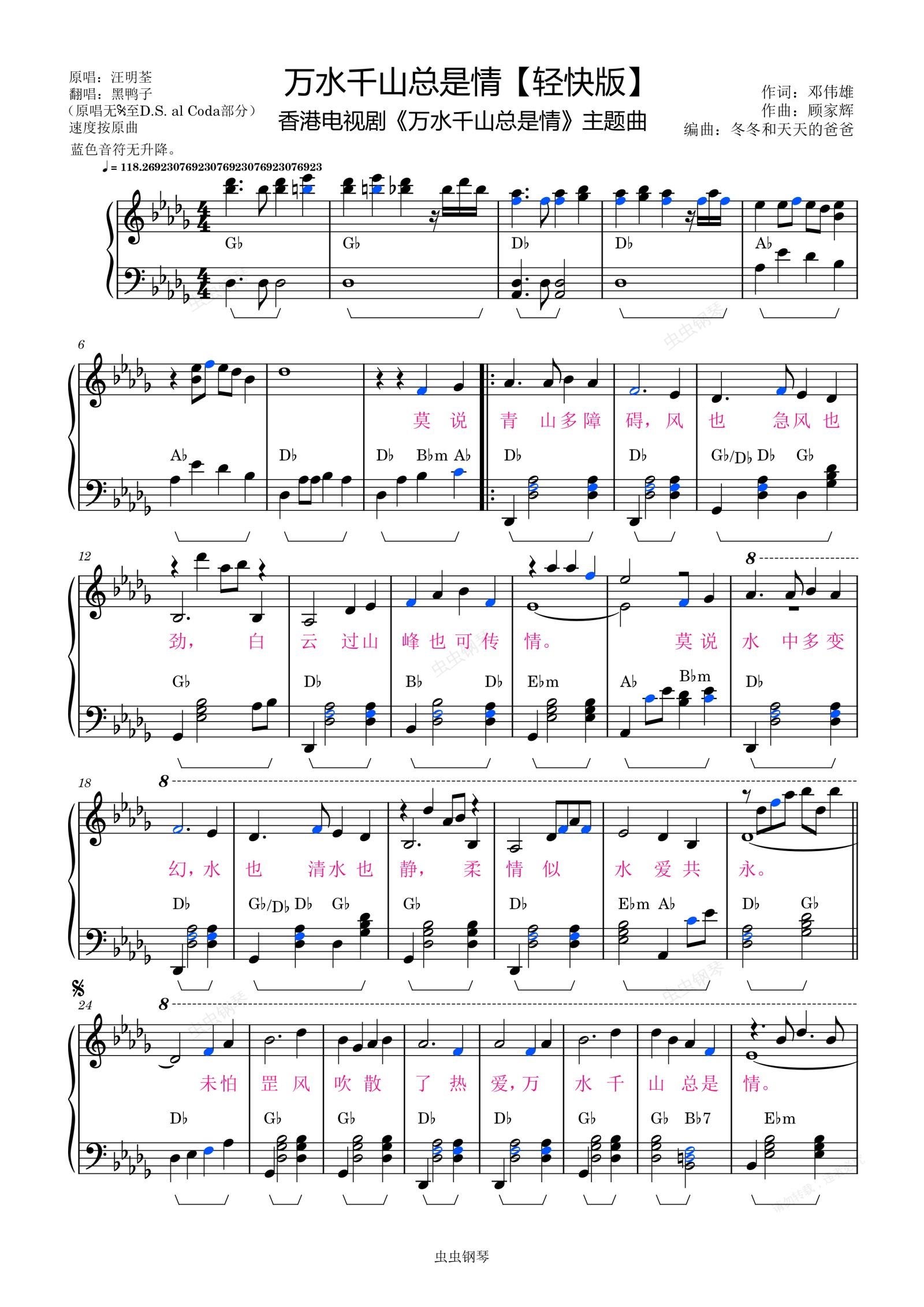 钢琴谱:万水千山总是情-Db大调【轻快版】简洁易弹