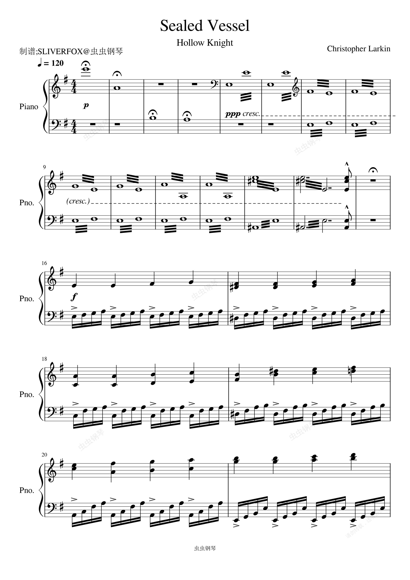钢琴谱:《Sealed Vessel》空洞骑士主题曲 独奏