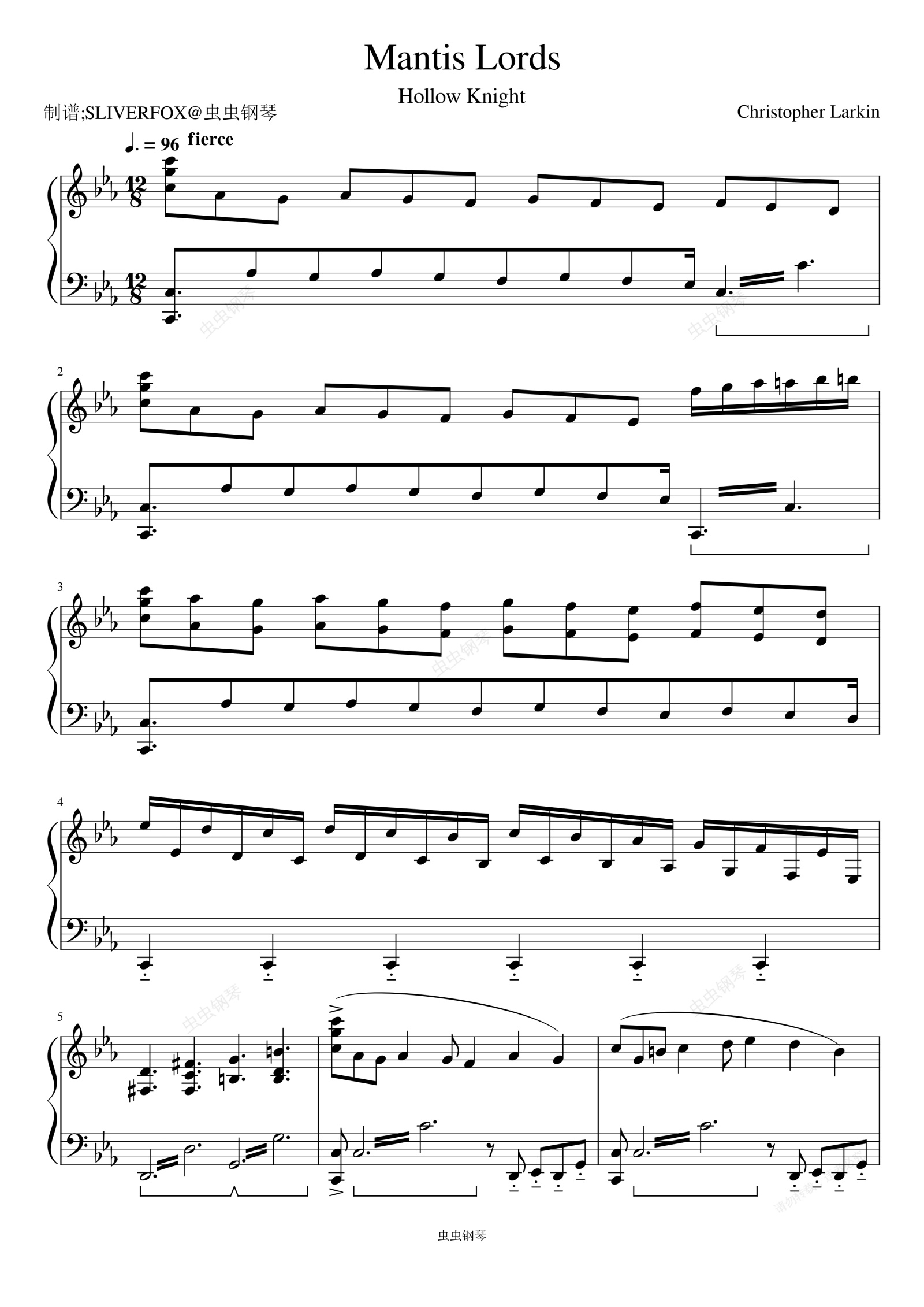 钢琴谱:《Mantis Lords》空洞骑士 螳螂领主奏 独奏