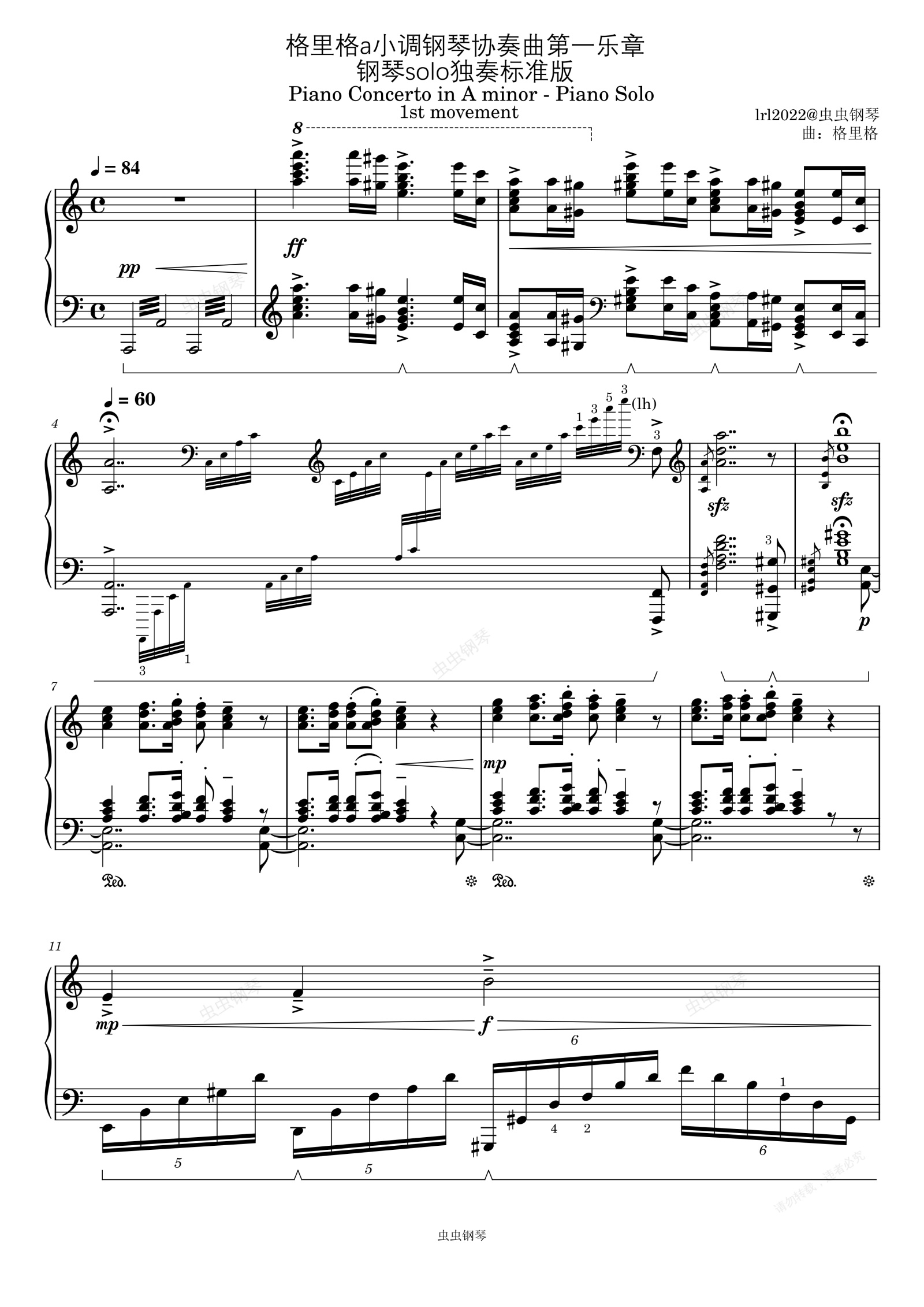 钢琴谱:格里格a小调钢琴协奏曲第一乐章--原谱高清附指法-钢琴solo独奏标准版-Op.16-Edvard Grieg